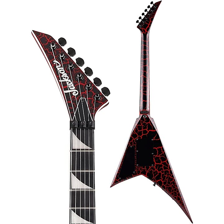 - Available in Lightning Crackle or Maul Crackle with matching reverse Jackson pointed 6-in-line headstock and black hardware