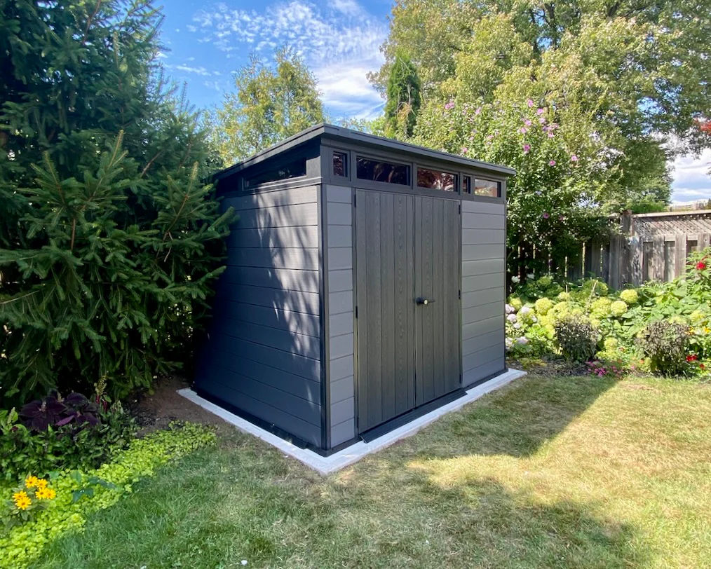 Embrace the ease of low to no maintenance storage with the Cortina 9x7 shed. This robust storage shed defies cracking, rotting, rusting, or peeling, ensuring enduring durability in any climate. The Cortina offers a spacious haven for safeguarding your tools, equipment, and seasonal items, keeping them sheltered from the elements without the hassle of constant upkeep.