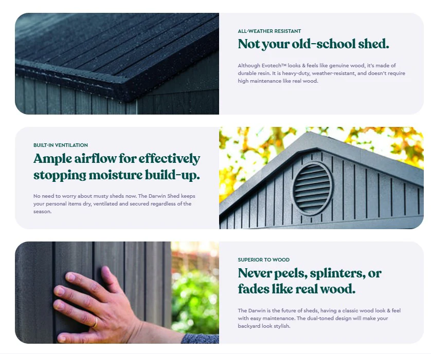 • Ideal outdoor storage solution for all garden tools and equipment, BBQ’s, bicycles and DIY tools