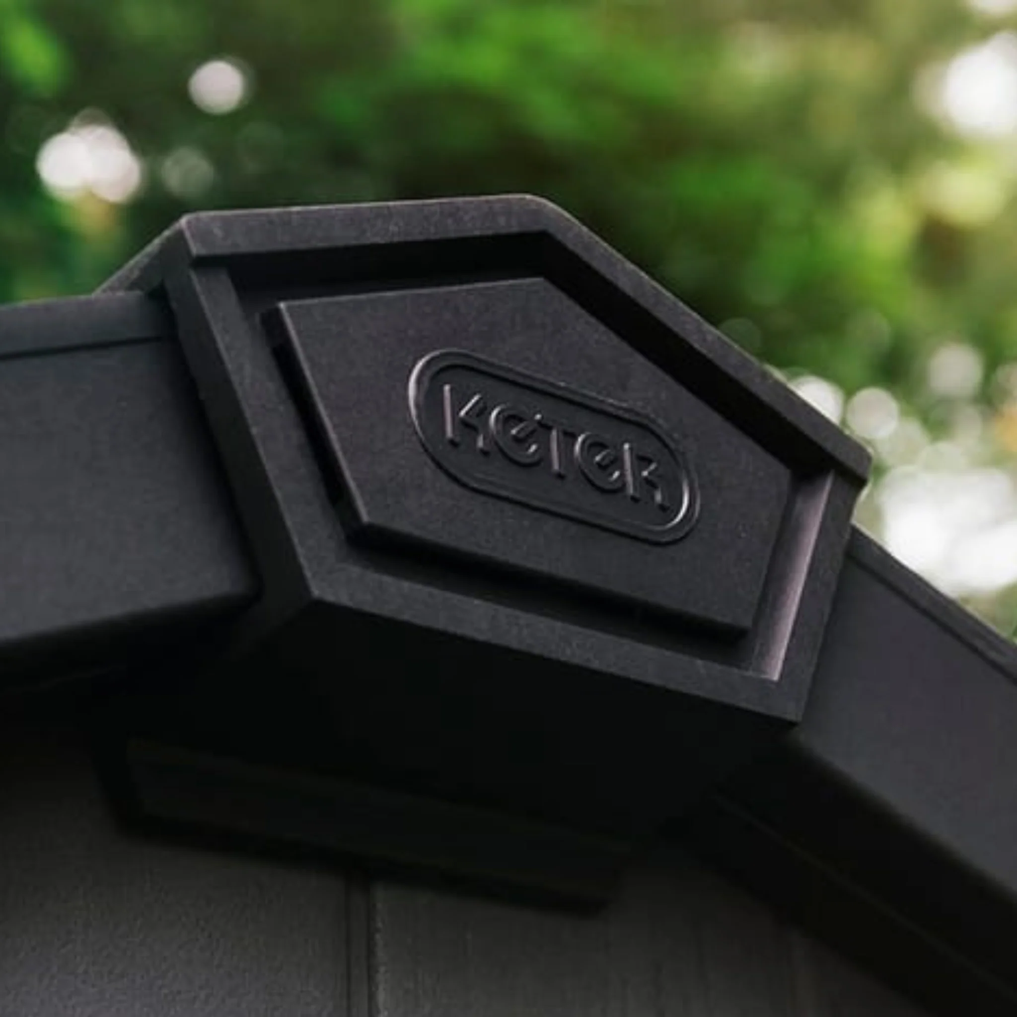 The spacious interior easily accommodates larger items, while the sturdy built-in floor keeps everything elevated and protected. Crafted with innovative Evotech+ panels, this shed combines the timeless look of natural wood with the superior durability of resin. It resists rust, rot, and peeling, ensuring a maintenance-free experience.