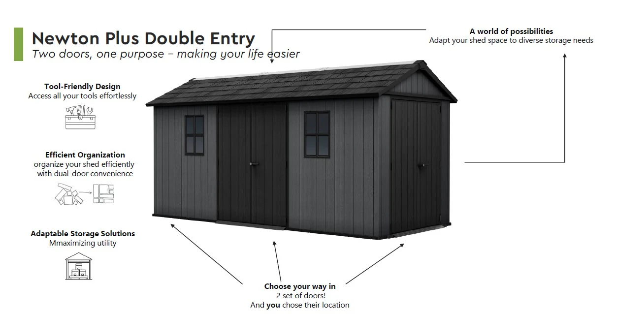 Now with Two Doors for Maximum Accessibility! Step into a world of convenience with a shed designed for ultimate versatility. With dual-door access, you no longer have to choose how to store and retrieve your belongings—it adapts to your needs effortlessly. Need space for bikes, outdoor furniture, or bulky equipment? No problem!