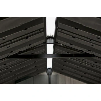 Style, accessibility and super rugged storage. The Oakland 1175 shed is the durable and weather-resistant addition to any backyard, providing a generous storage solution with a heavy-duty floor, robust roof and double wall structure reinforced with steel. Its unique and easily paintable DUOTECH™ walls have an attractive worn wooden texture walls, a Victorian-style window, a skylight and double doors that provide accessibility.
