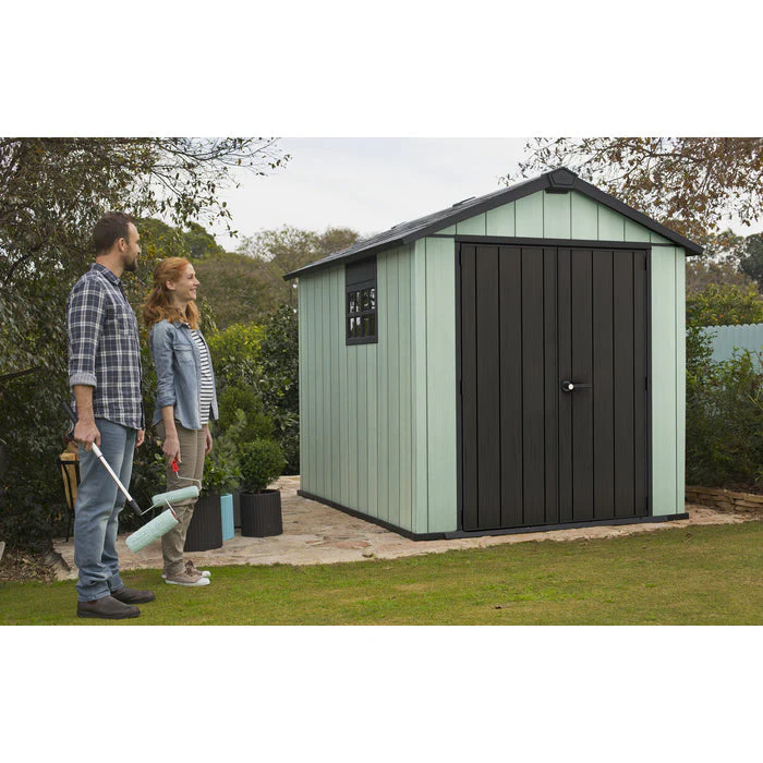 Style, accessibility and super rugged storage. The Oakland 759 shed is the durable and weather-resistant addition to any backyard, providing a generous storage solution with a heavy-duty floor, robust roof and double wall structure reinforced with steel. Its unique and easily paintable DUOTECH™ walls have an attractive worn wooden texture walls, a Victorian-style window, a skylight and double doors that provide accessibility.
