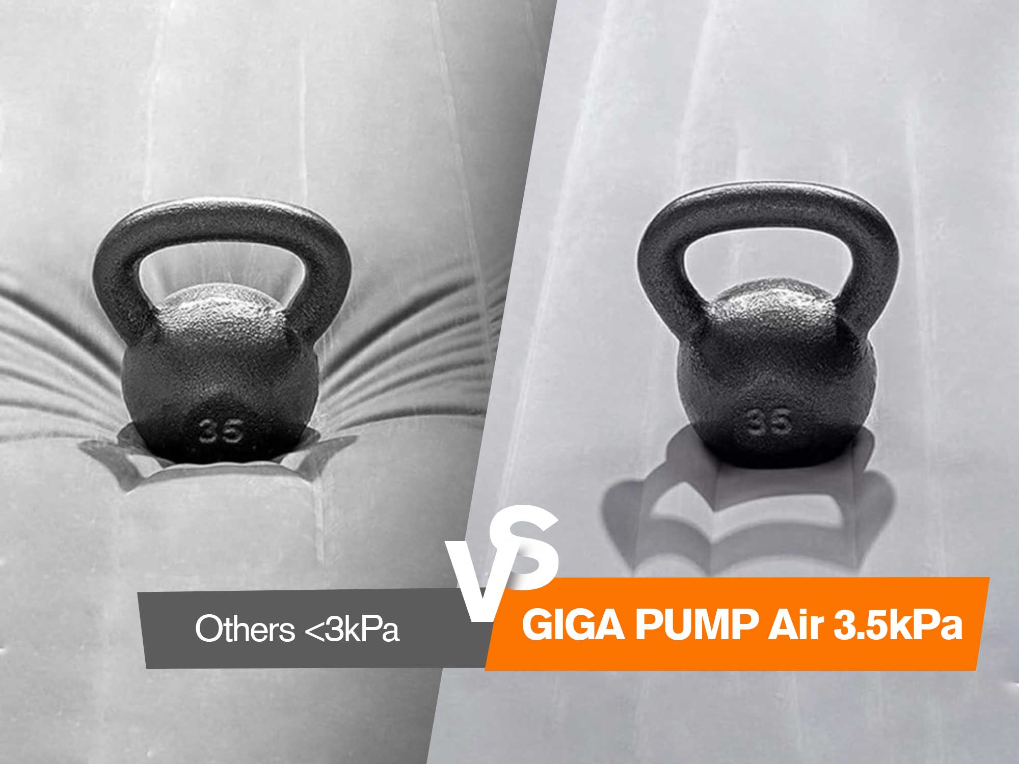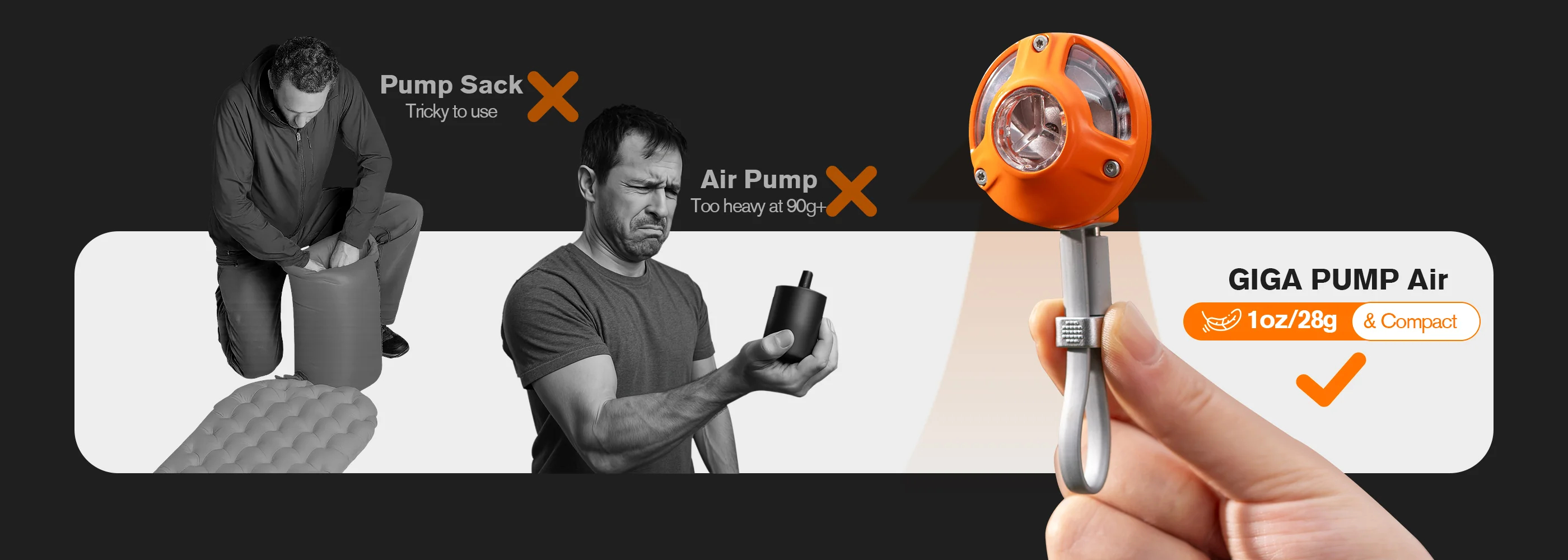 With a high air pressure of 3.5kPa, GIGA PUMP Air inflates your gear to a fully expanded, firm state. This added pressure gives mattresses, pillows, and pads better shape, structure, and support—so you can truly rest with comfort and confidence.