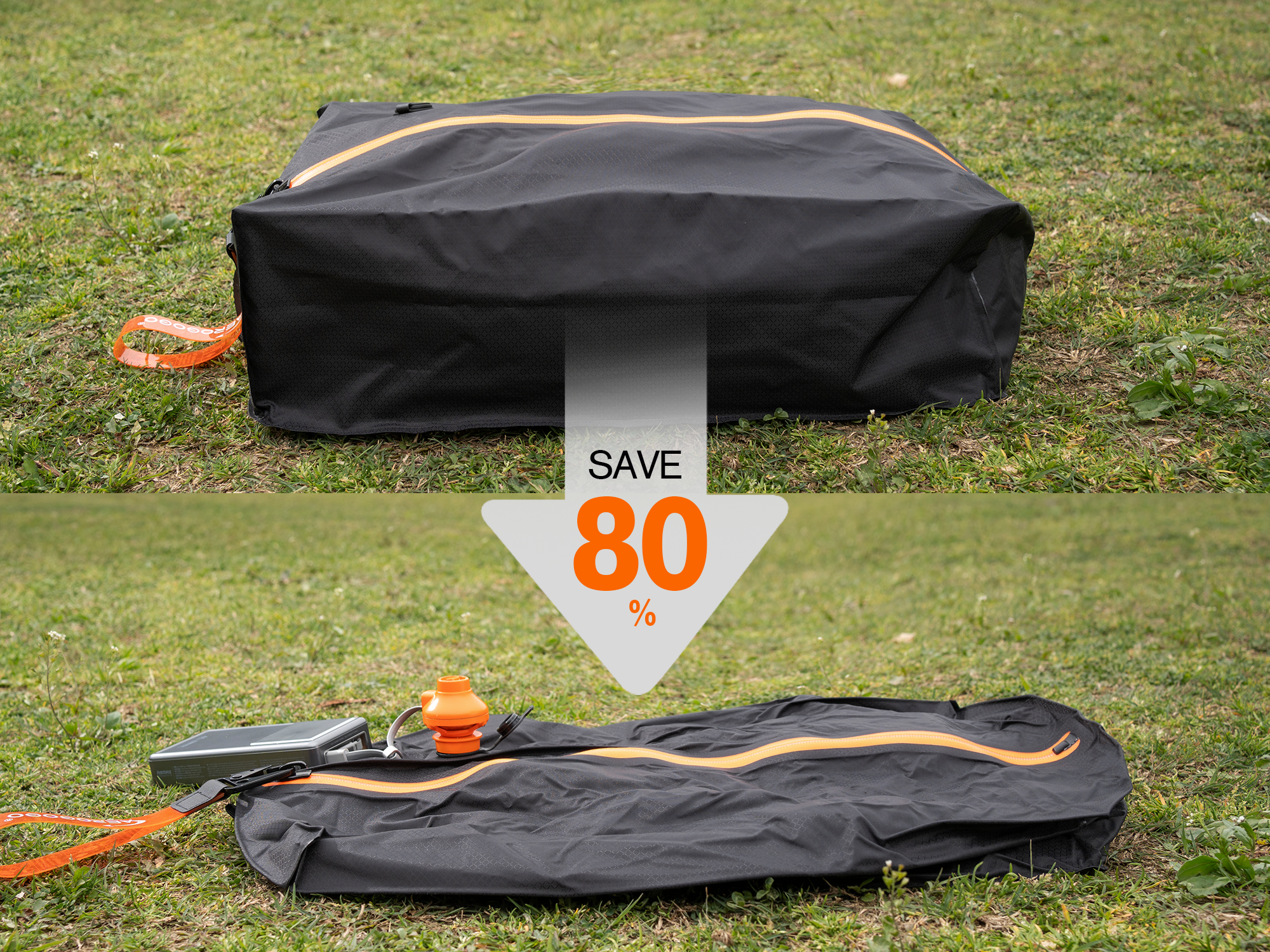 When it’s time to pack up, GIGA PUMP Air transforms into a powerful vacuum pump—compressing items by up to 80% when used with vacuum bags. Whether at home or outdoors, it helps you save valuable space wherever you go.