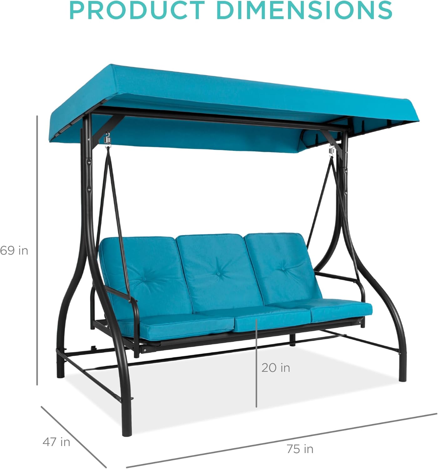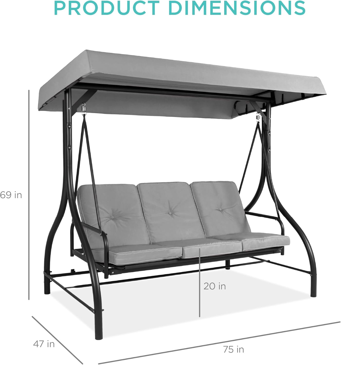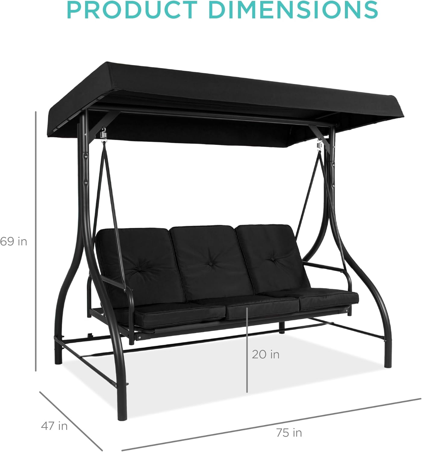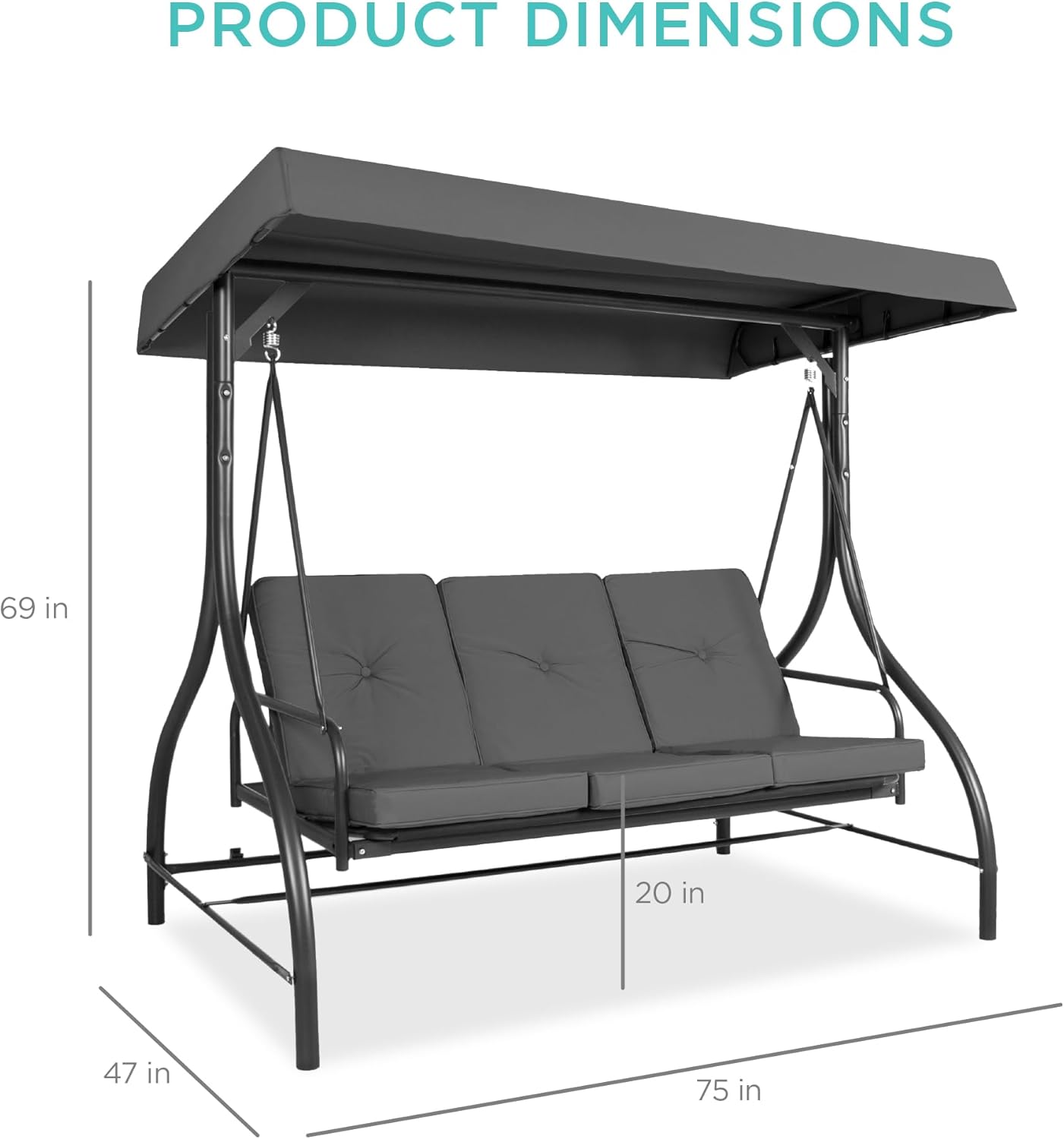 - FOR USE ANYWHERE: A sturdy, open design makes this an excellent addition to your porch, backyard, patio, garden, or sunroom; OVERALL DIMENSIONS: 75"(L) x 47"(W) x 69"(H); Weight Capacity: 750 lbs.