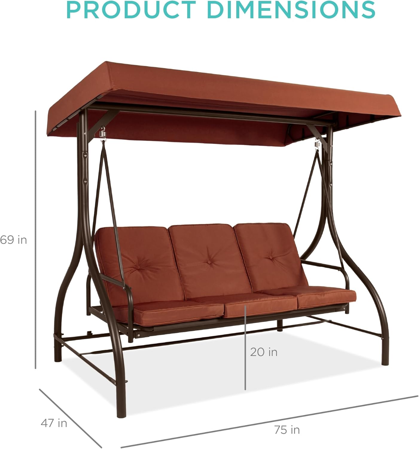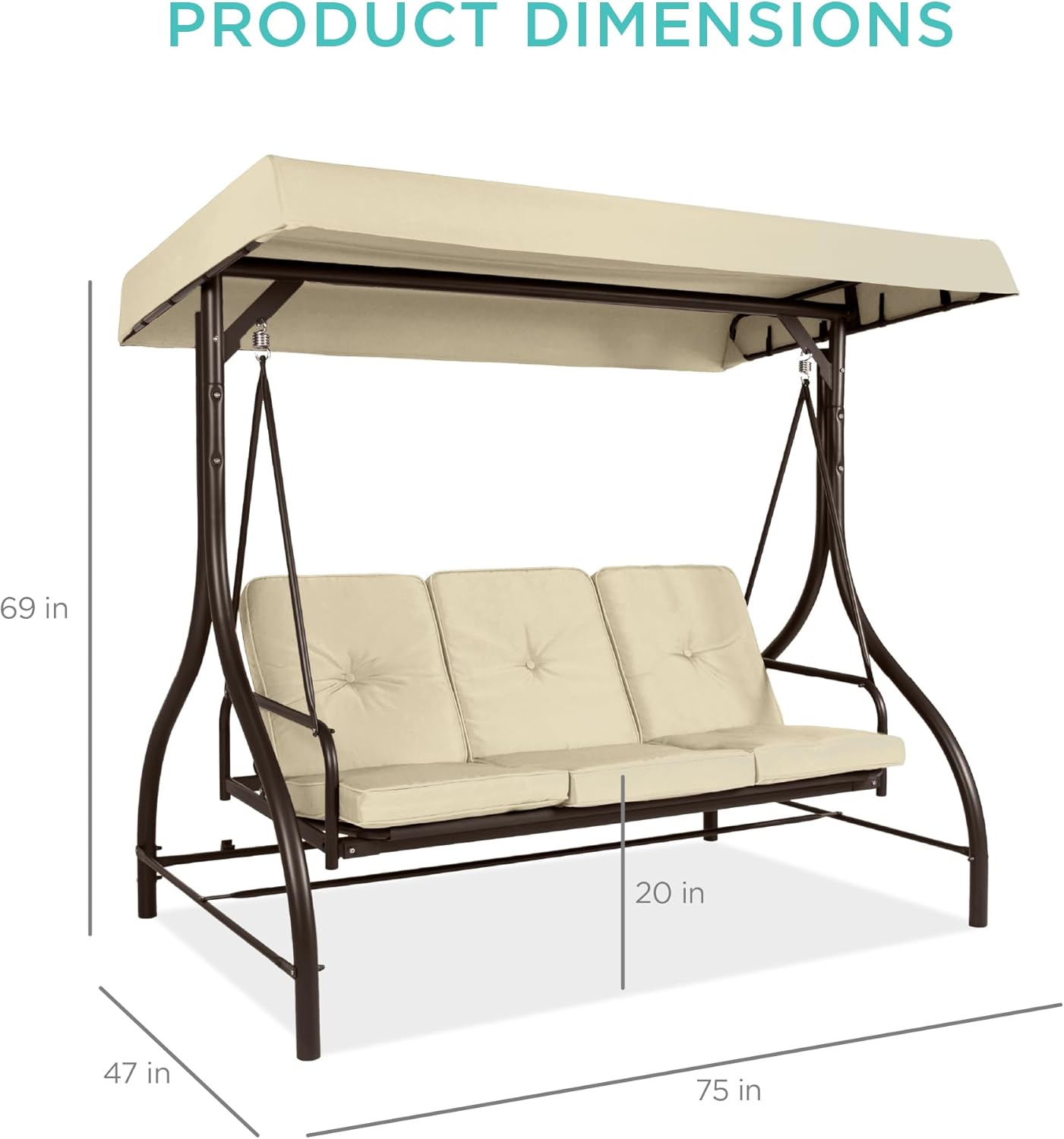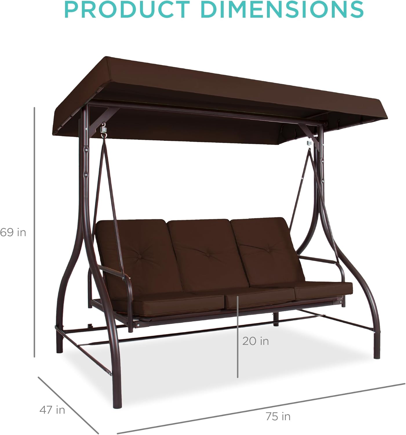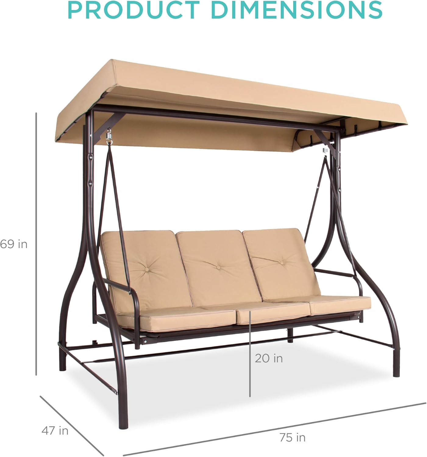 - FOR USE ANYWHERE: A sturdy, open design makes this an excellent addition to your porch, backyard, patio, garden, or sunroom; OVERALL DIMENSIONS: 75"(L) x 47"(W) x 69"(H); Weight Capacity: 750 lbs.