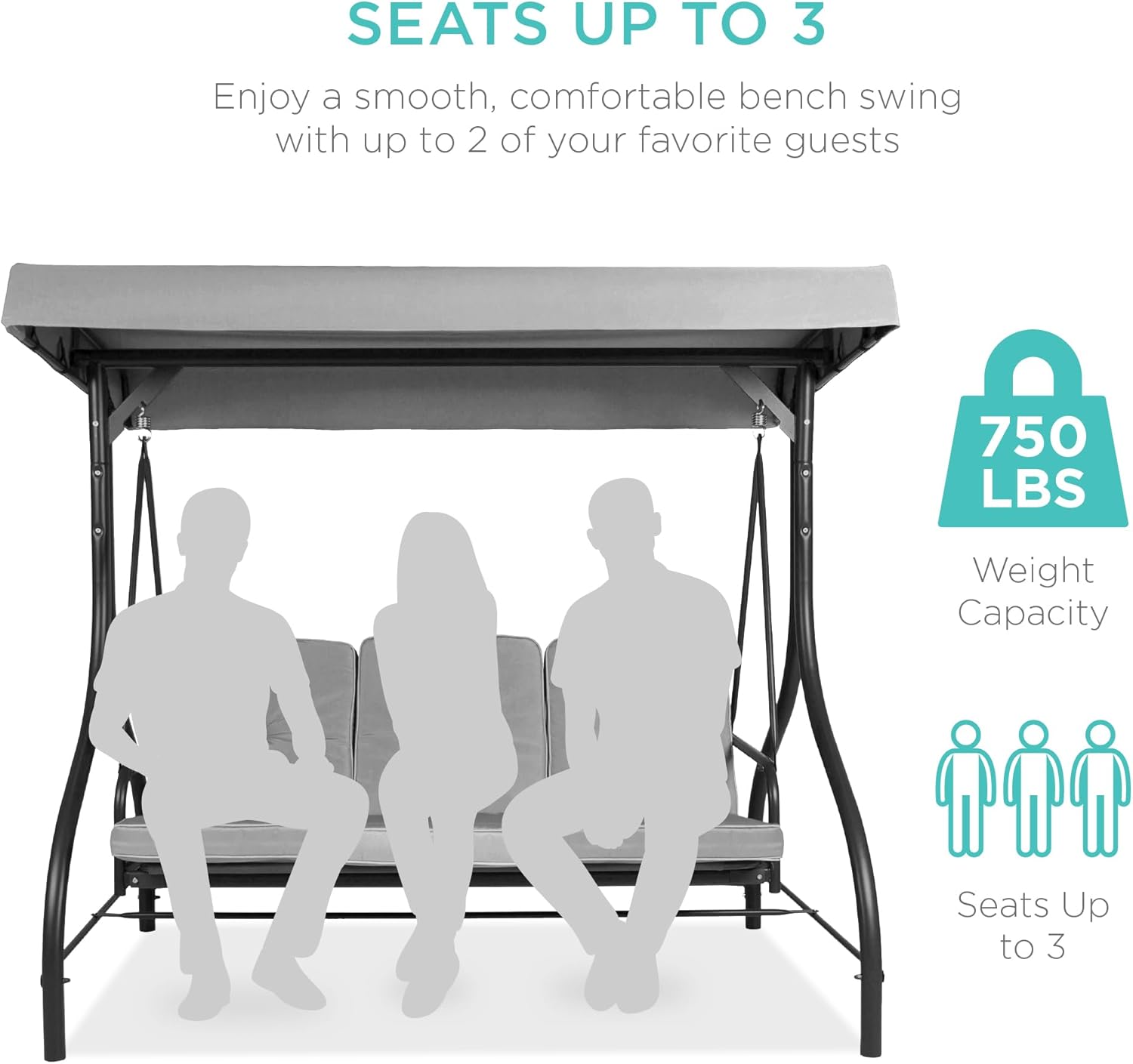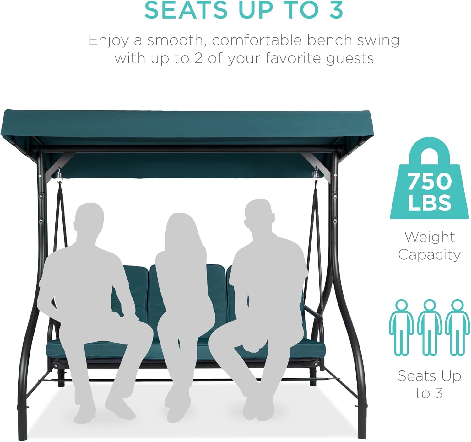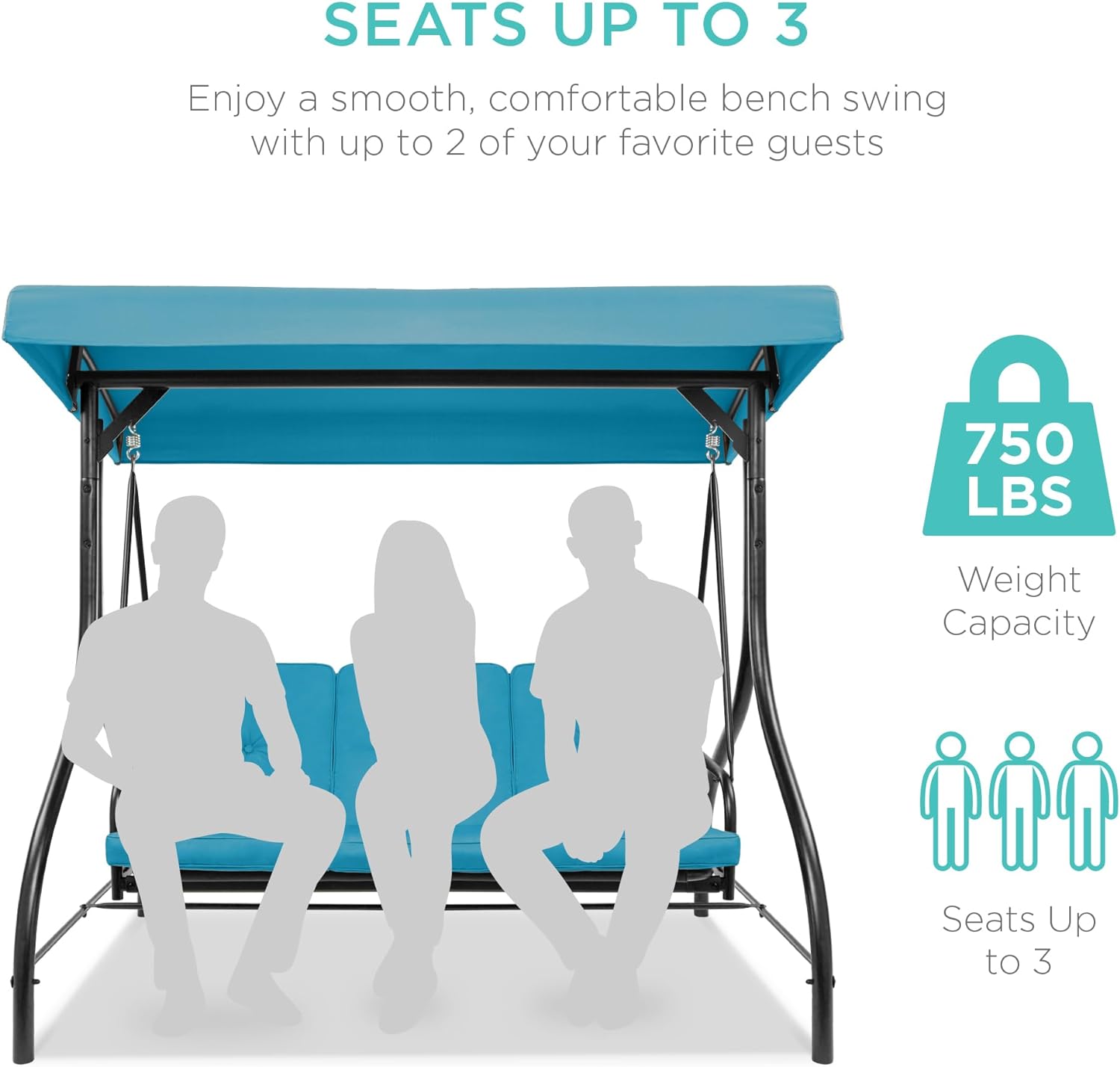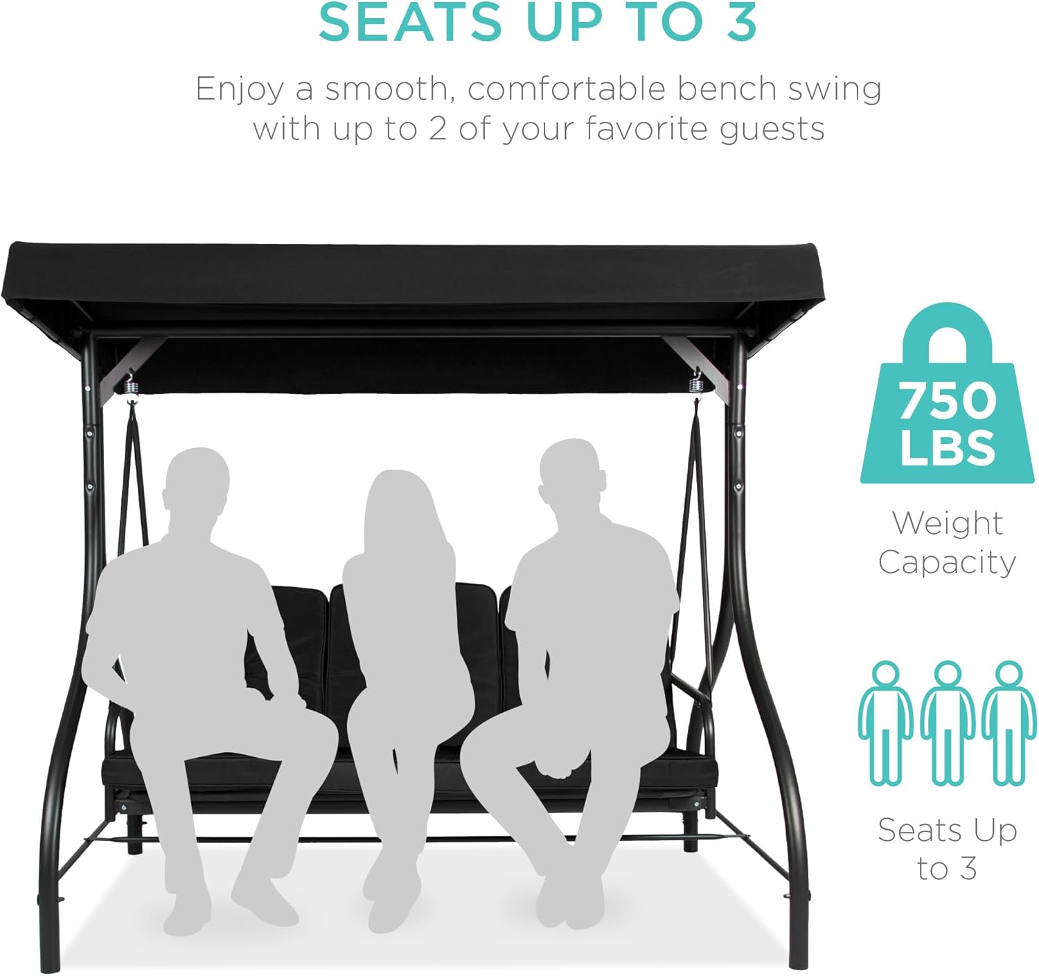 - SEATS UP TO 3: Three plush cushions on a 51-inch seat with a massive 750-pound weight capacity comfortably seats you and your two favorite guests