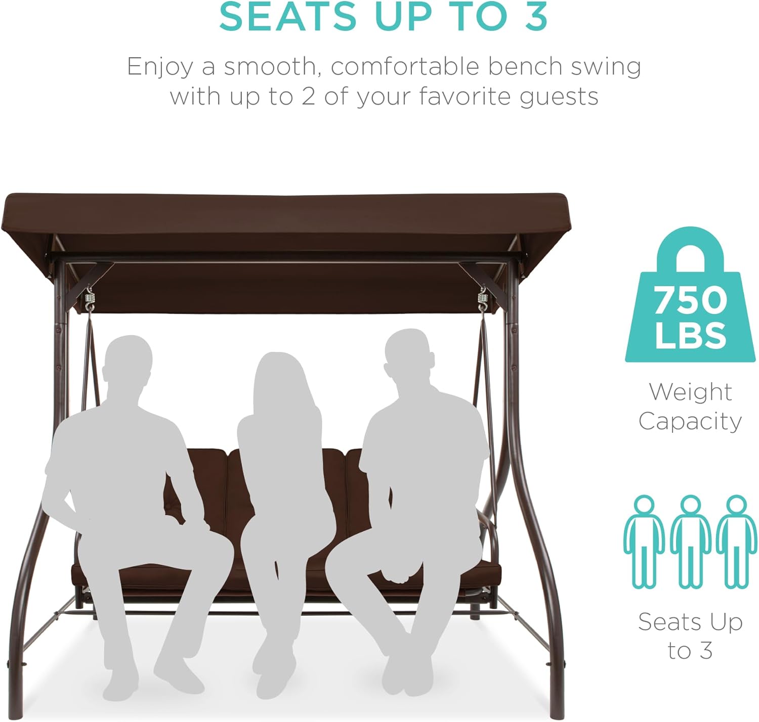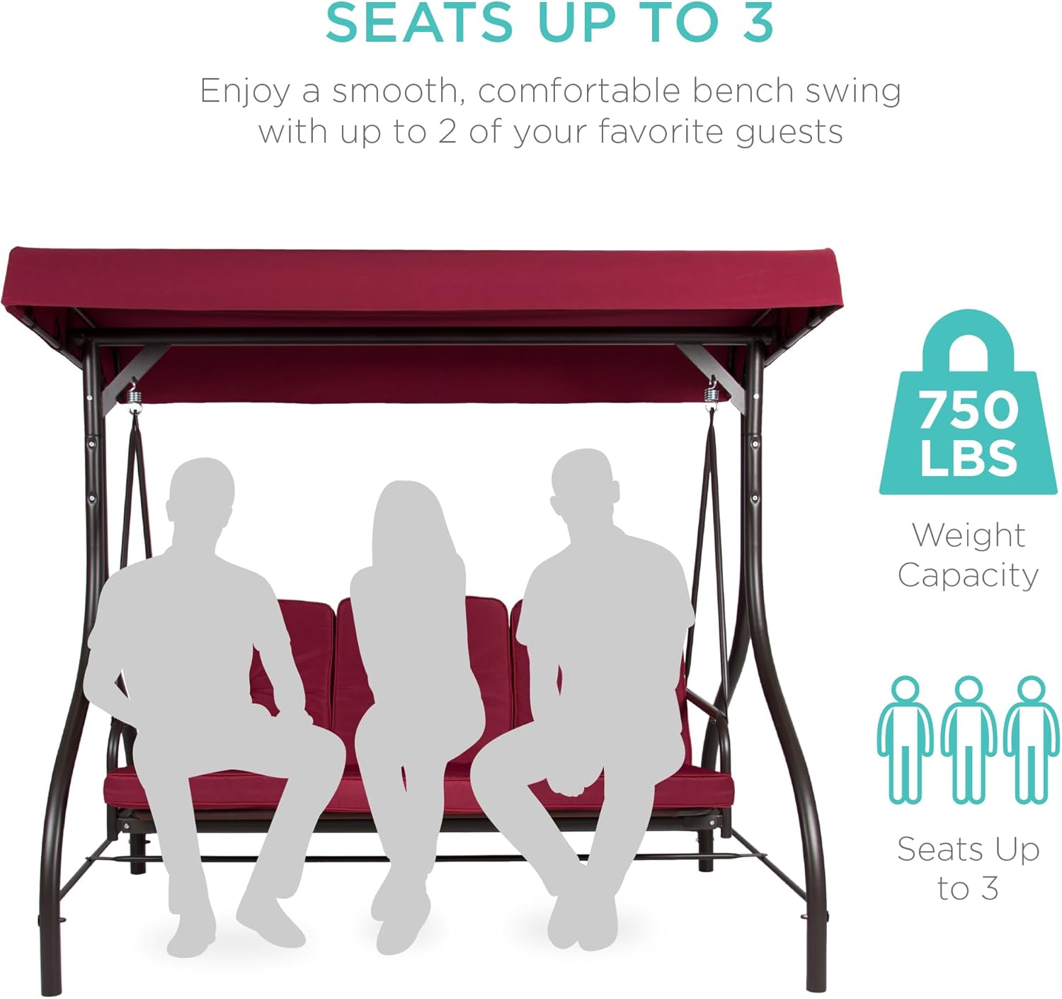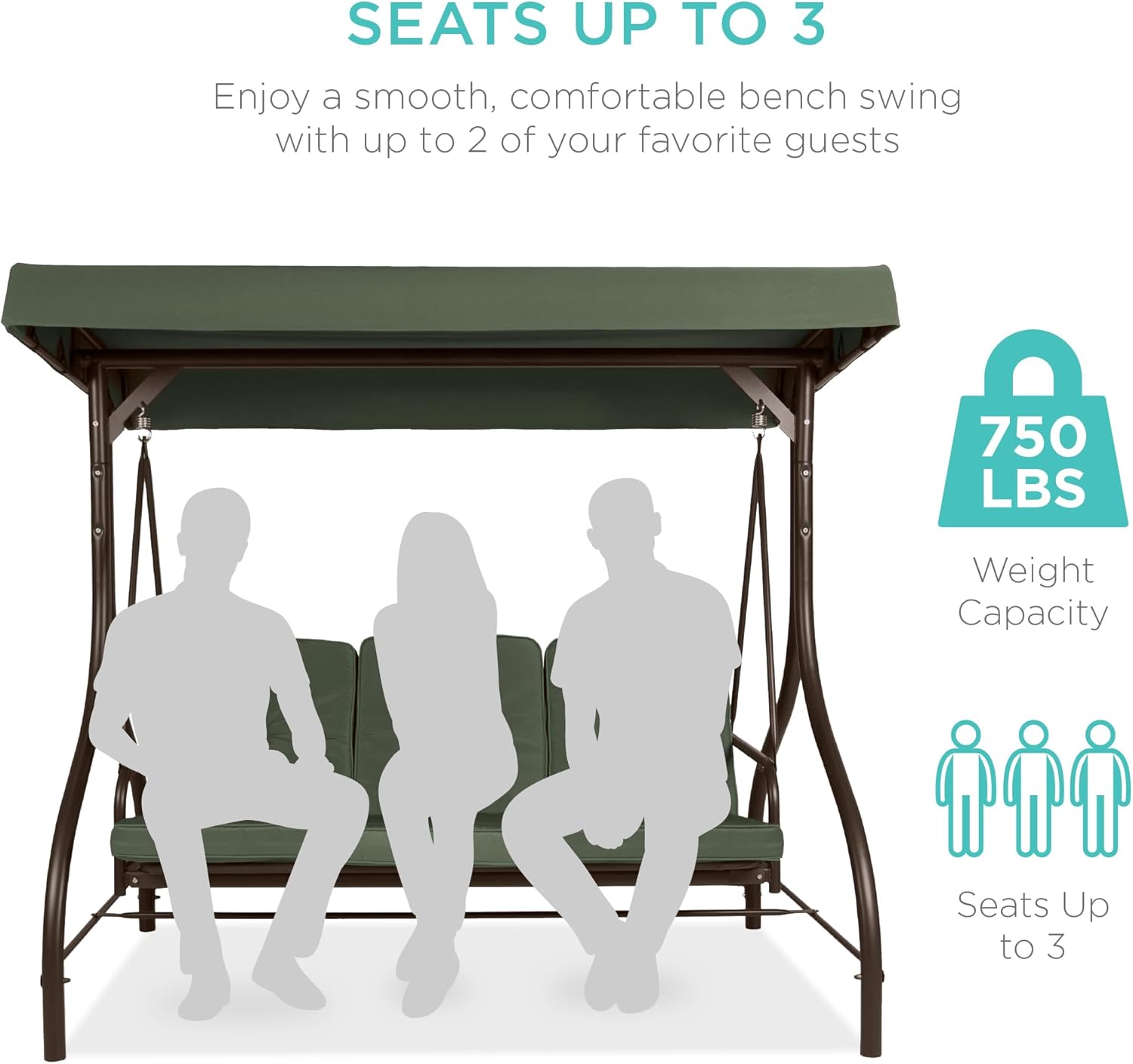 - SEATS UP TO 3: Three plush cushions on a 51-inch seat with a massive 750-pound weight capacity comfortably seats you and your two favorite guests