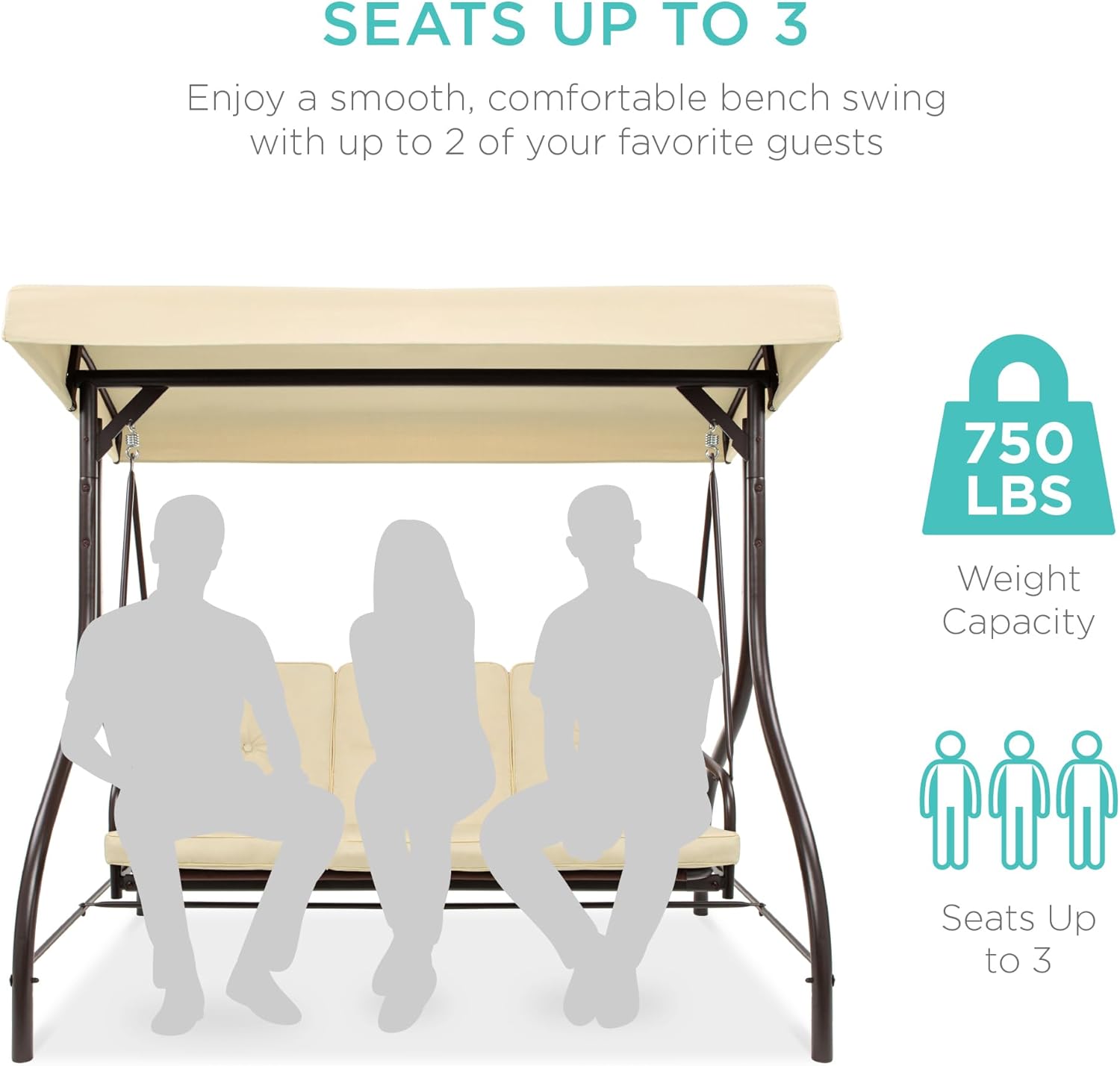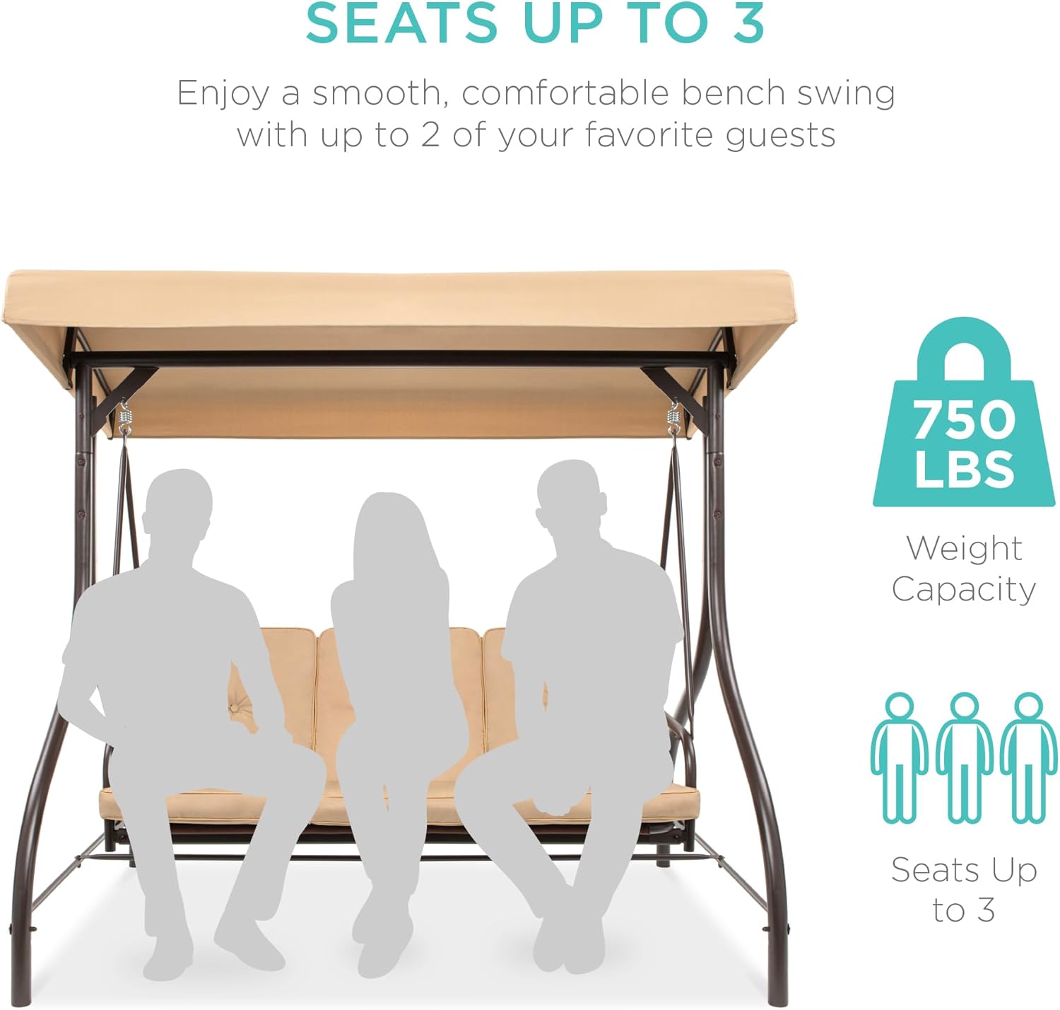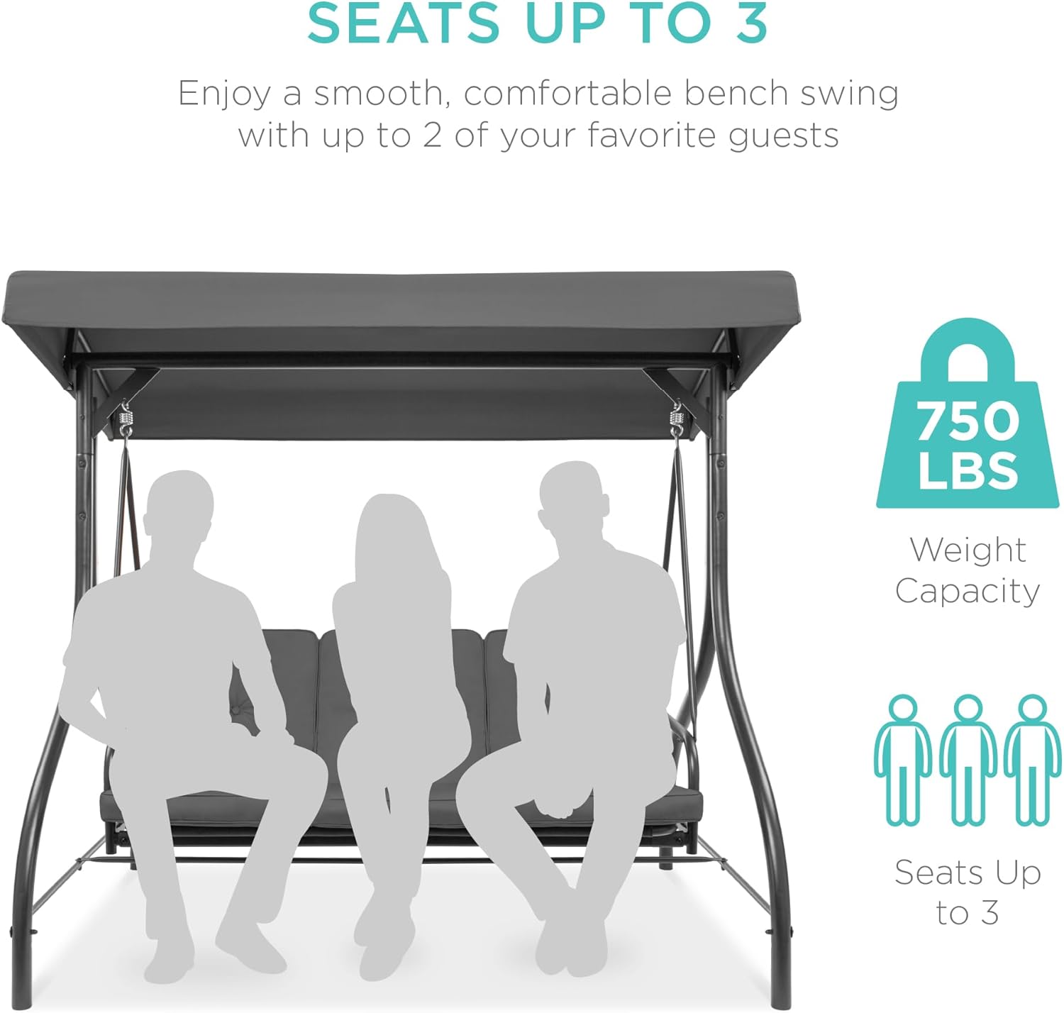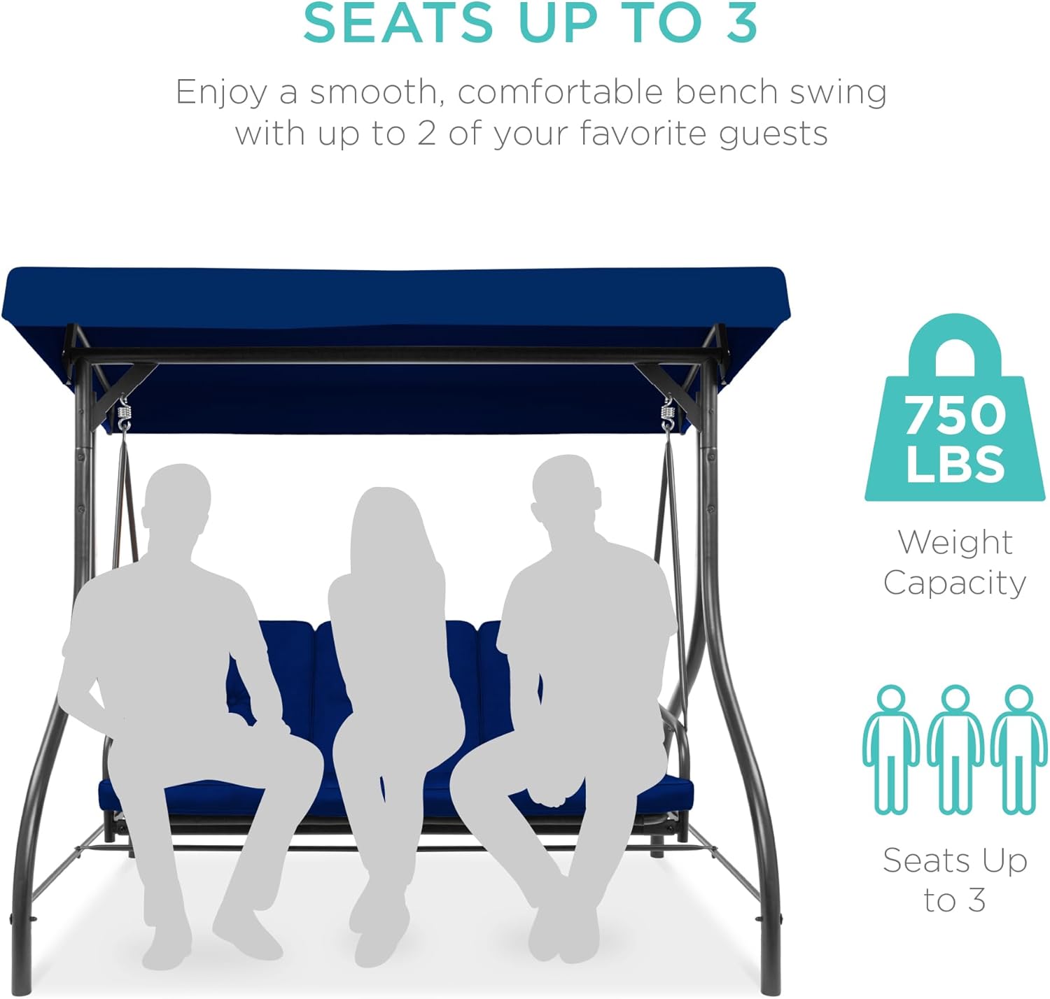 - SEATS UP TO 3: Three plush cushions on a 51-inch seat with a massive 750-pound weight capacity comfortably seats you and your two favorite guests
