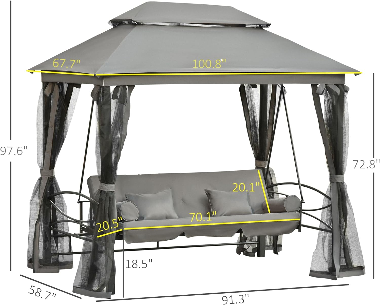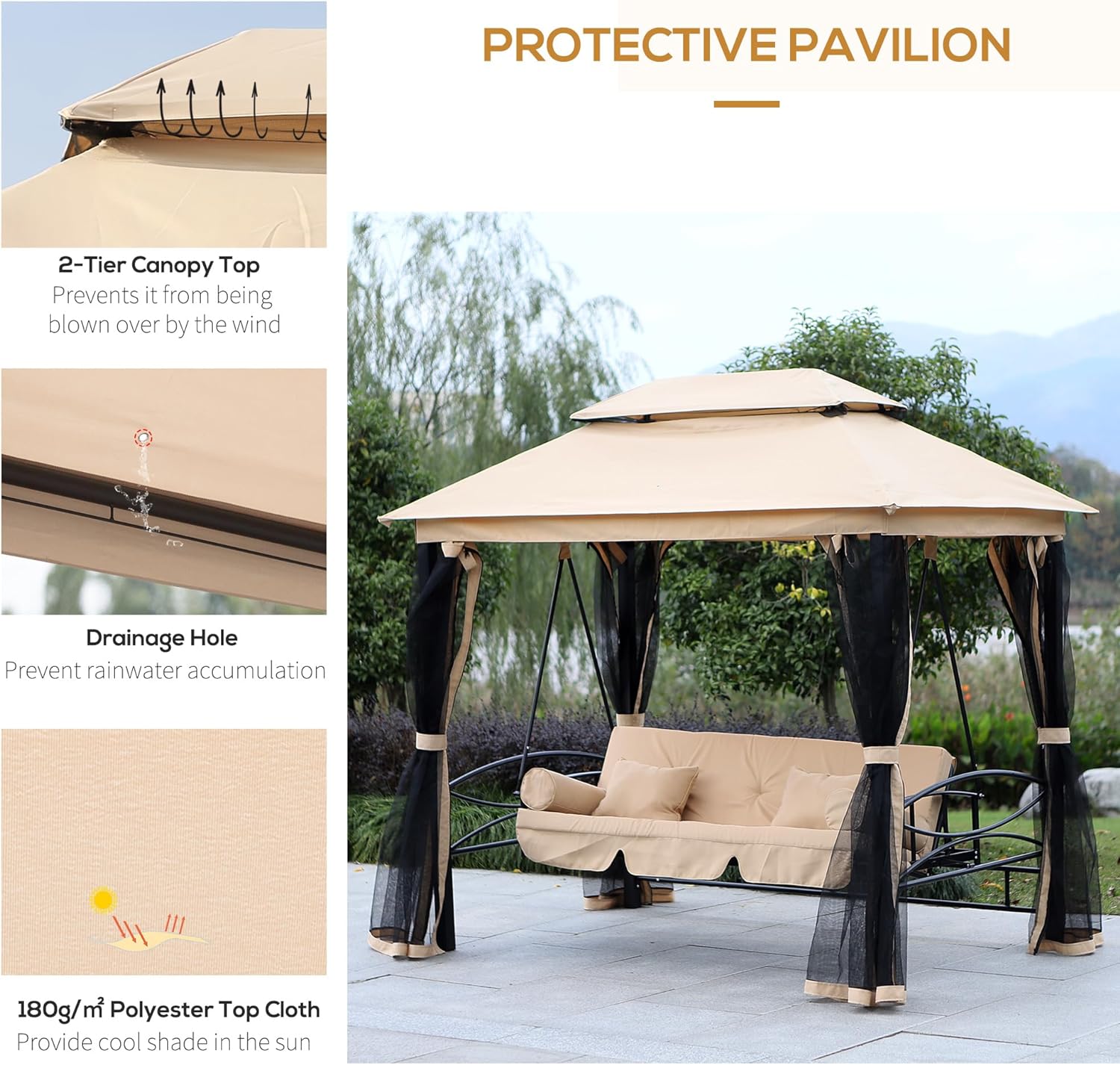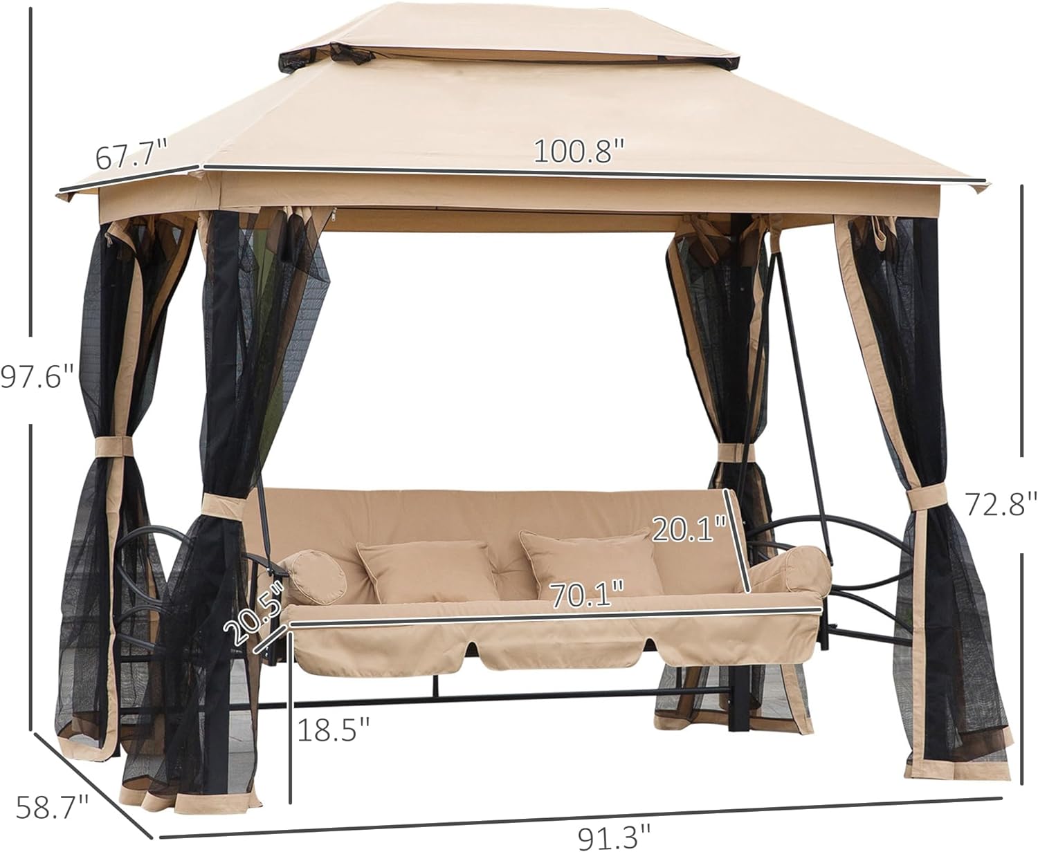 - Comfortable 3 Person Seating: Features a cushioned seat and backrest, and cozy throw pillows to help you enjoy the outdoors just a little more. Get a little outdoor exercise with the family or have a romantic nap under the canopy.