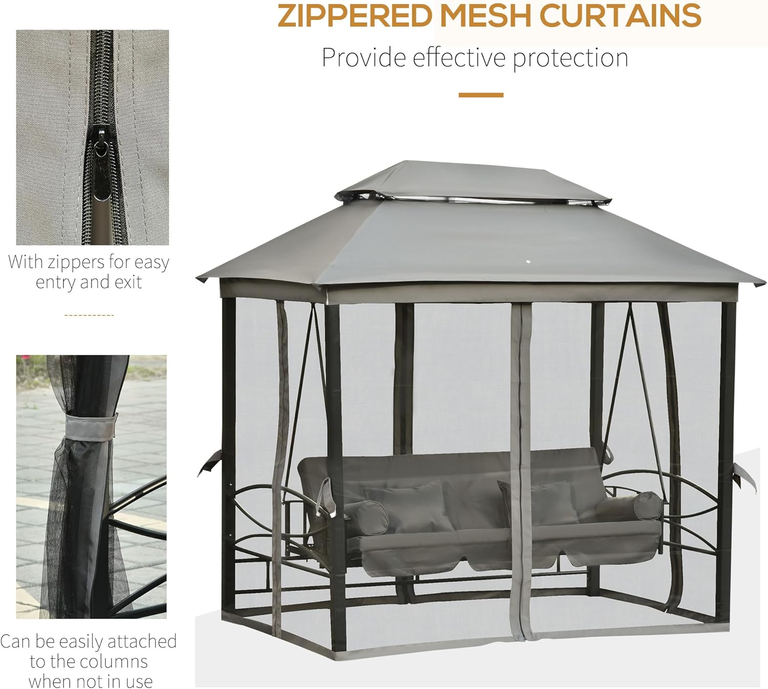 - Outdoor Outings That Don'T Bite: Block glare and other pesky problems. Use our patio swing's zipper mesh netting to let the good in and keep the bad out. (4 zipper mesh netting sidewalls included).