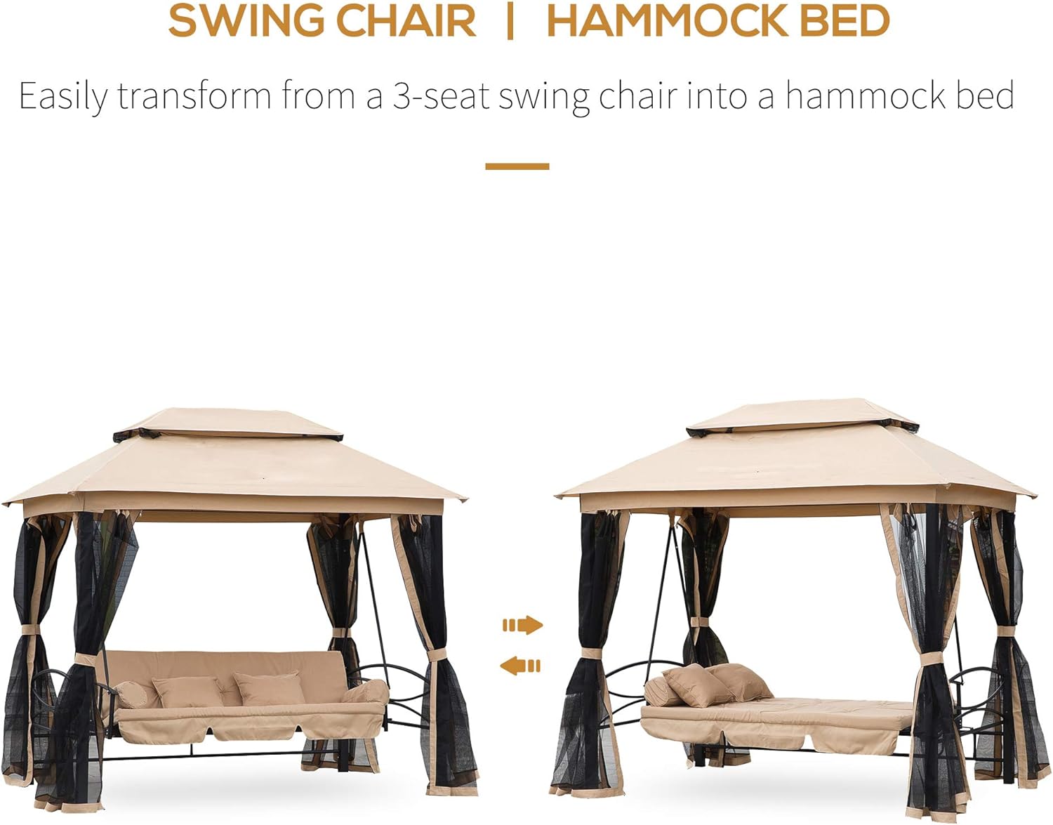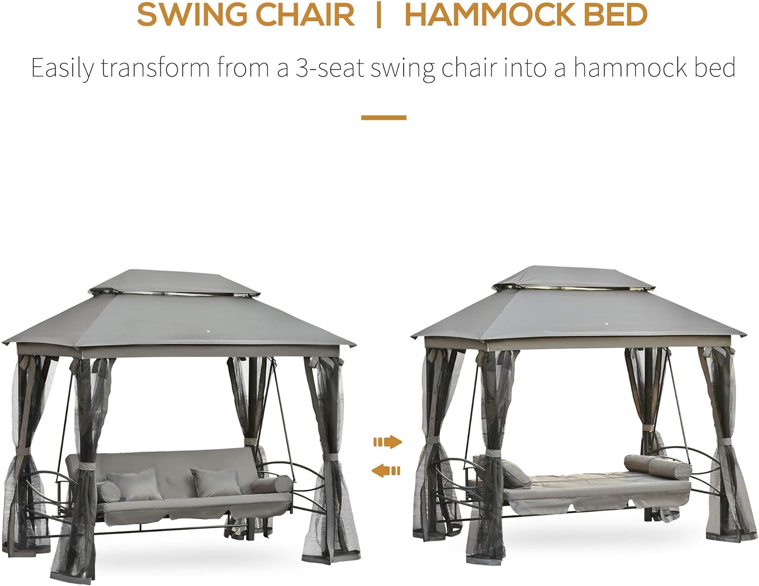 - 3-In-1 Design: Relax in style with this swing chair, hammock bed and gazebo. With a simple lock and release system, the canopy swing can easily change into a comfortable flatbed, allowing you to relax and swing while staying in the shade.