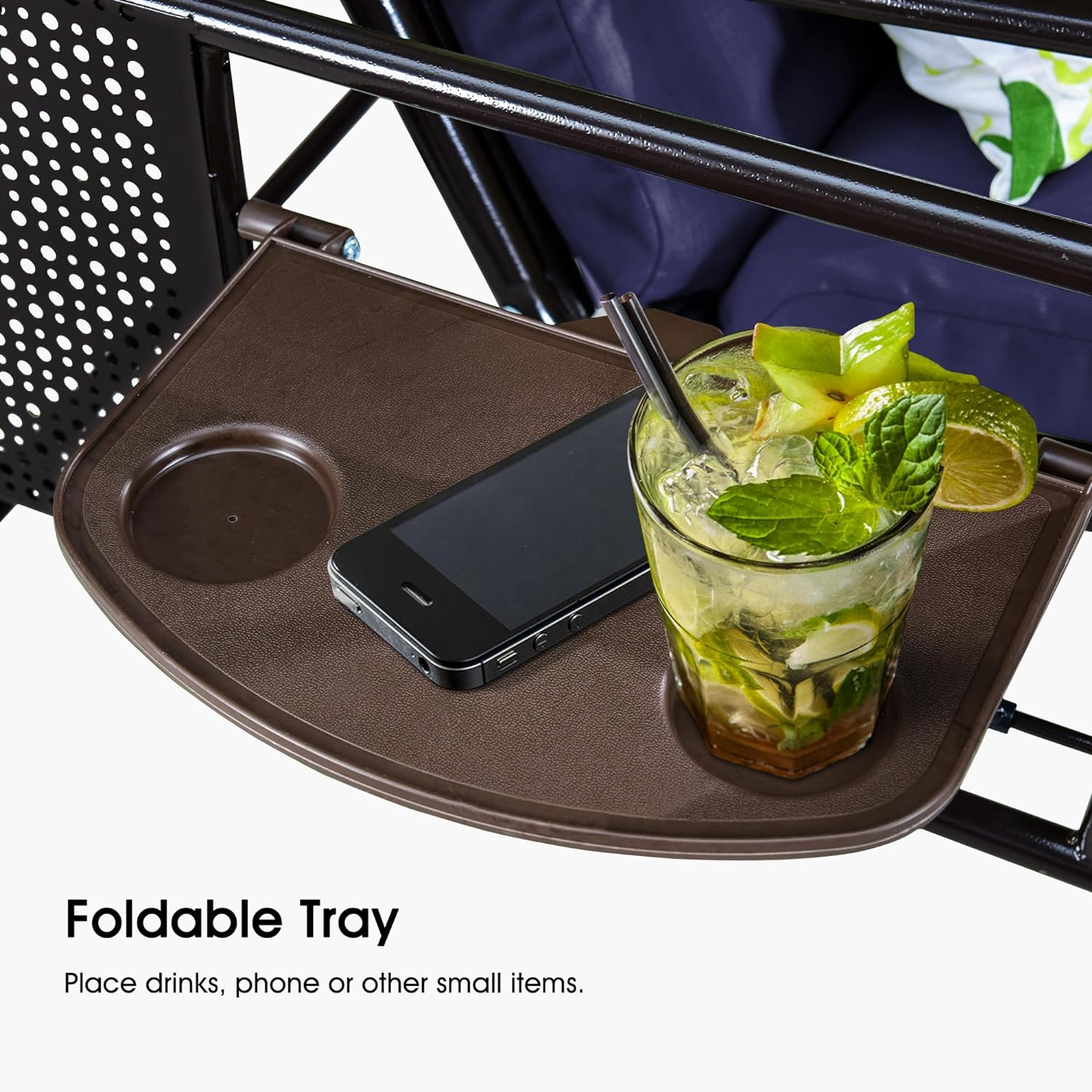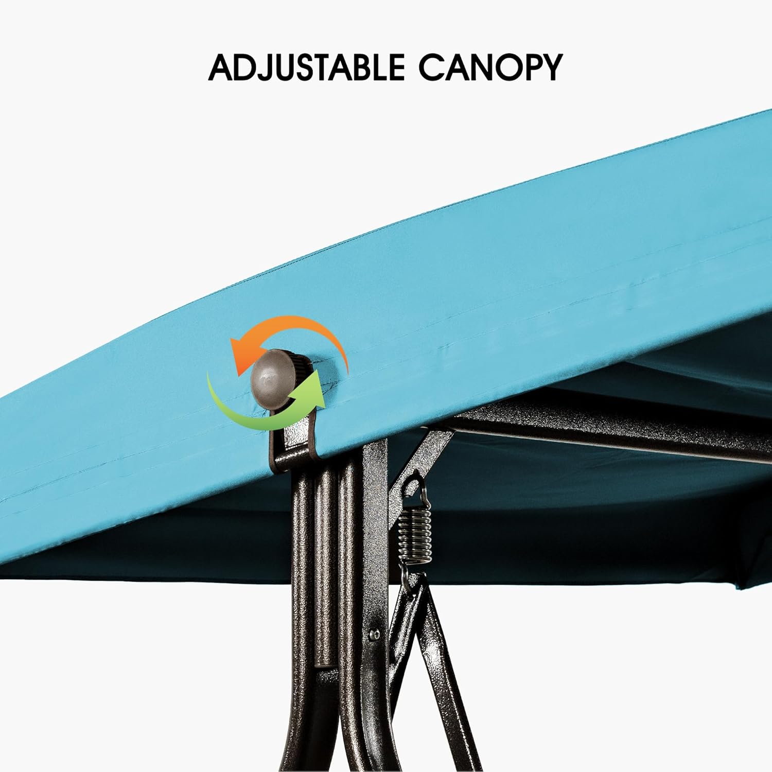 - COMFORTABLE & STYLISH: The canopy of this porch swing can be rotated, provides optional shade coverage for sunshade all day long. Three wide removable seats give you plenty of space. Soft cushion makes it more comfortable for your back or arm in a relaxing break. 2 foldable multifunctional side tables included.