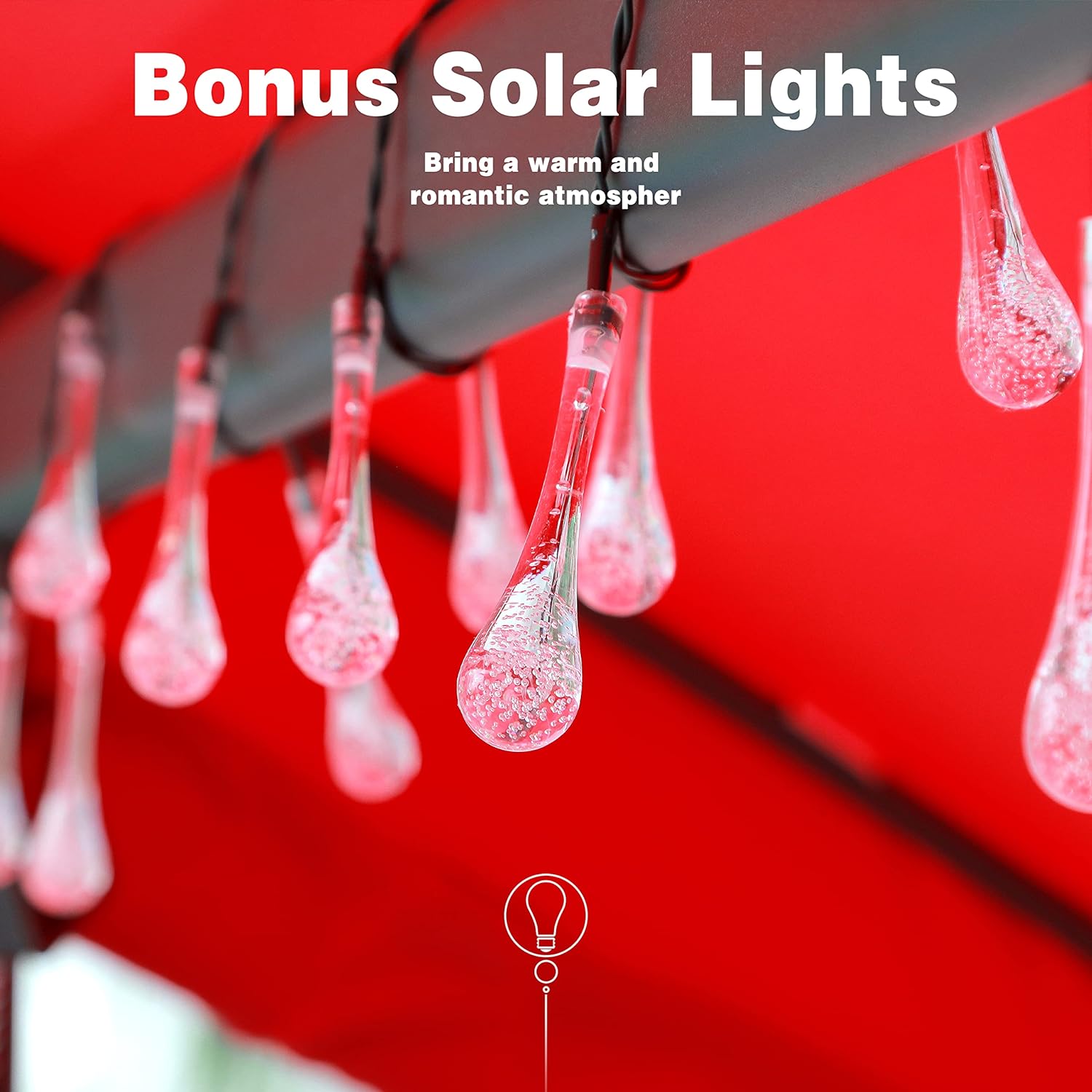 - EXTRA SOLAR LIGHTS: Colorful lighting creates comfort, warmth and relaxation patio ambiance.