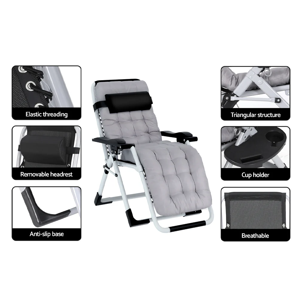 Introducing the Gardeon Folding Sun Lounger, the perfect addition to your indoor or outdoor relaxation space. Made with a breathable textilene fabric, this lounger will keep you cool and comfortable even on the hottest of days. The removable headrest provides extra cushioning for your head and neck, ensuring maximum relaxation. A cosy cotton pad can be used for additional comfort and easily removed for disassembly. Crafted with a sturdy steel frame, this lounger is both lightweight and durable, making it easy to move around and store when not in use. The non-slip feet provide added stability, so you can recline up to 170 degrees with confidence. A convenient cup holder allows you to enjoy your favourite beverages while lounging in the sun. Assembly is a breeze, so you can start enjoying your new lounger in no time. When you're ready to pack up and go, the foldable design makes it easy to transport and store. Whether you're soaking up the sun in your backyard or lounging in your living room, the Gardeon Folding Sun Lounger is the perfect choice for ultimate relaxation.