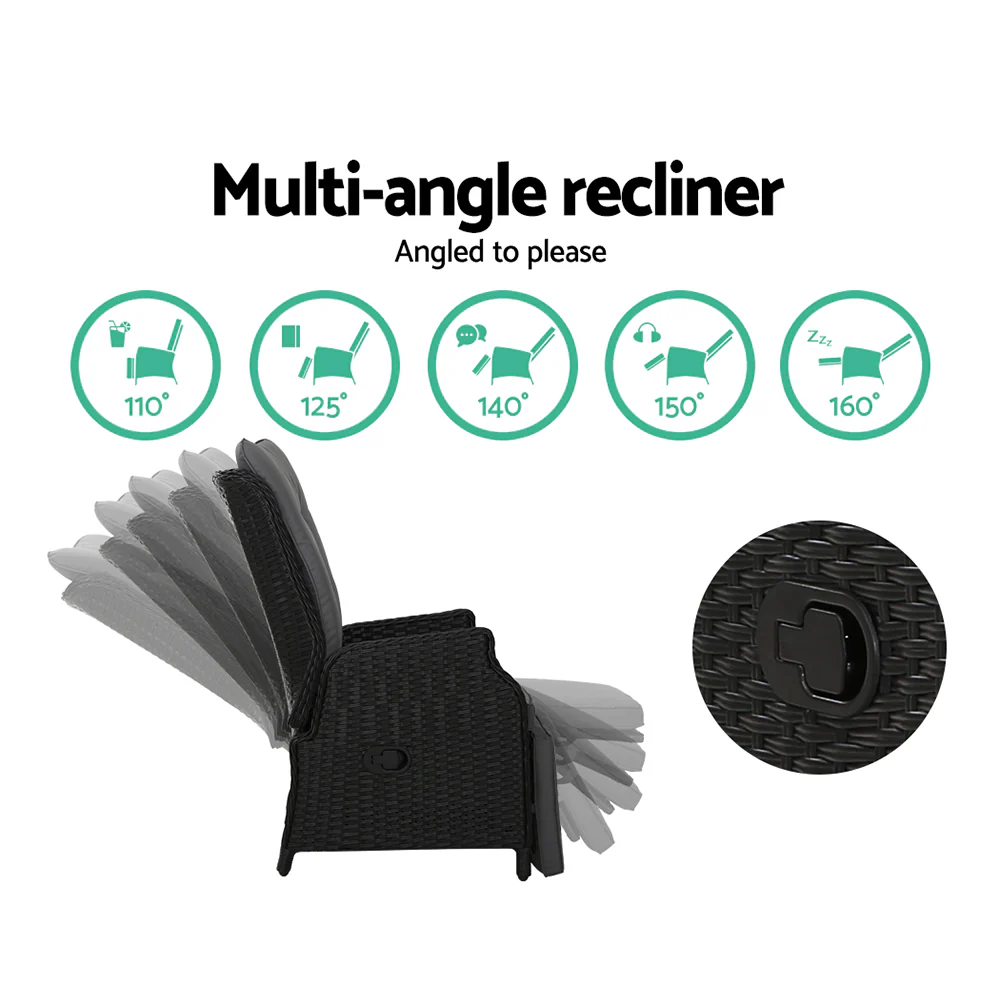 Now you can really sit back and chill in the outdoors with the Gardeon Wicker Recliner, precisely what you need for relaxation in elegant wicker style. The recliner is made of UV-resistant and weather-resistant PE wicker so that you never have to worry about rust, corrosion or weathering issues. The heavy-duty powder-coated steel frame is sturdy and hardy and will stand up to robust use easily. More importantly, the recliner is fully adjustable, with adjustable backrest and footrest to let you lie back and stretch your legs for full-body relaxation. Better still, the seat cushion is made of high-density foam for ultra-comfort while the zipped cover is weather-resistant, removable and washable. Yes, it is indeed paradise under the sun, moon and stars. Have it outdoors or indoors, the wicker recliner is equally at home with its exquisite design and unique presence for any home décor enthusiast.