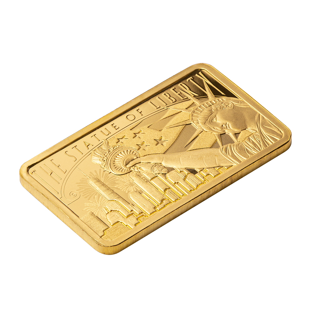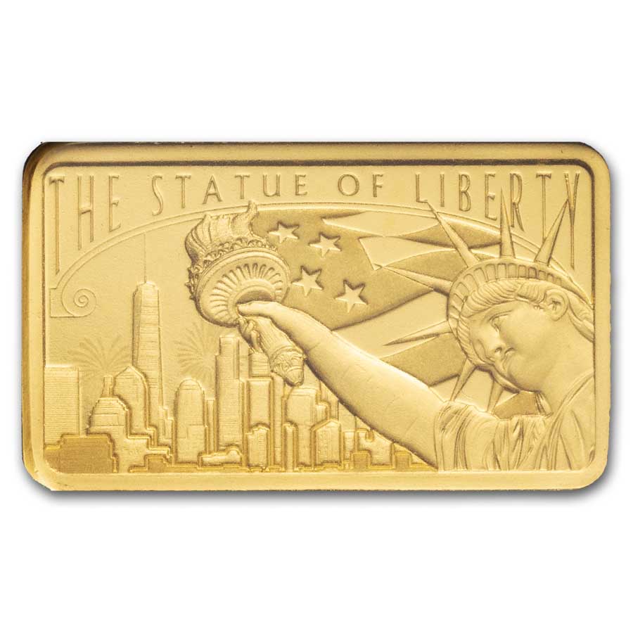 The Statue of Liberty was a gift of friendship from the people of France. Add the 5 gram Gold PAMP Statue of Liberty Bar to your cart today!