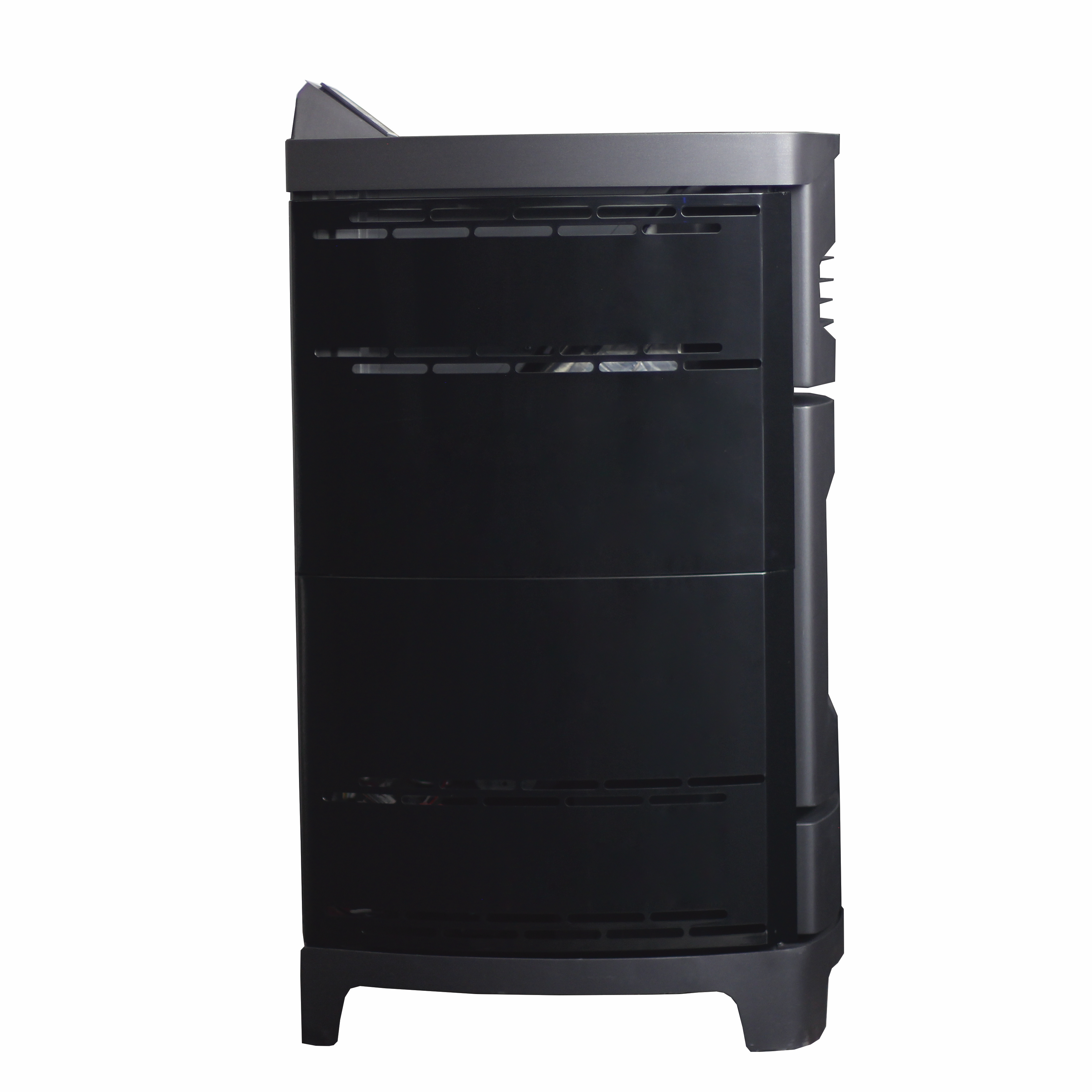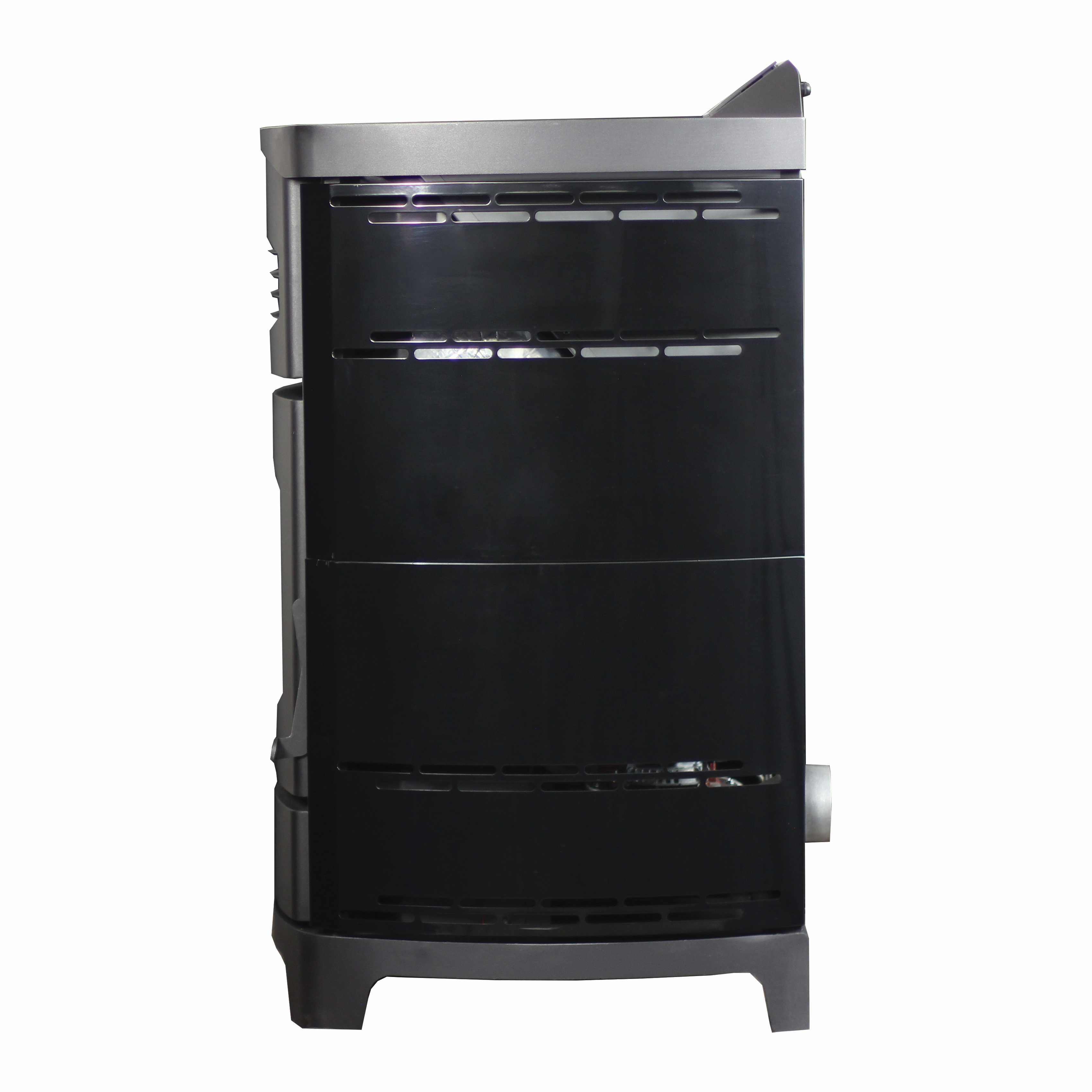 Clean lines, gentle curves and modern technology meet with the AP5780E. This slim line pellet stove is designed to fit into tighter spaces yet produces the same amount of heat as a full size pellet stove. It can heat up to 2,200 Sq. Ft. The all digital control system comes with a temperature readout and a remote control for simple adjustments. It comes with a 46 Lb. hopper to provide up to 32 hours of burn time between fillings. This stove is a show piece with its curved black sides and flat black accents. The AP5780E wood pellet stove exceeds 75% efficiency and qualifies for the 30% IRS Sec.(25C) Residential Energy Tax Credit.