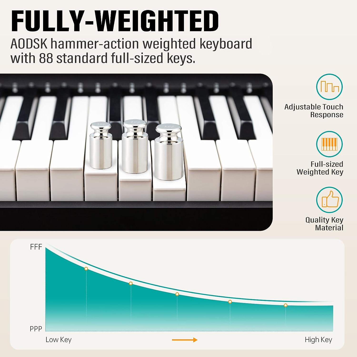 - 🎹【Ideal for Beginners】With 128 polyphony numbers 128 Timbres and 88 demonstration songs, the AODSK B-83 digital piano can provide crystal clear interpretation, very suitable for teaching and self-learning.