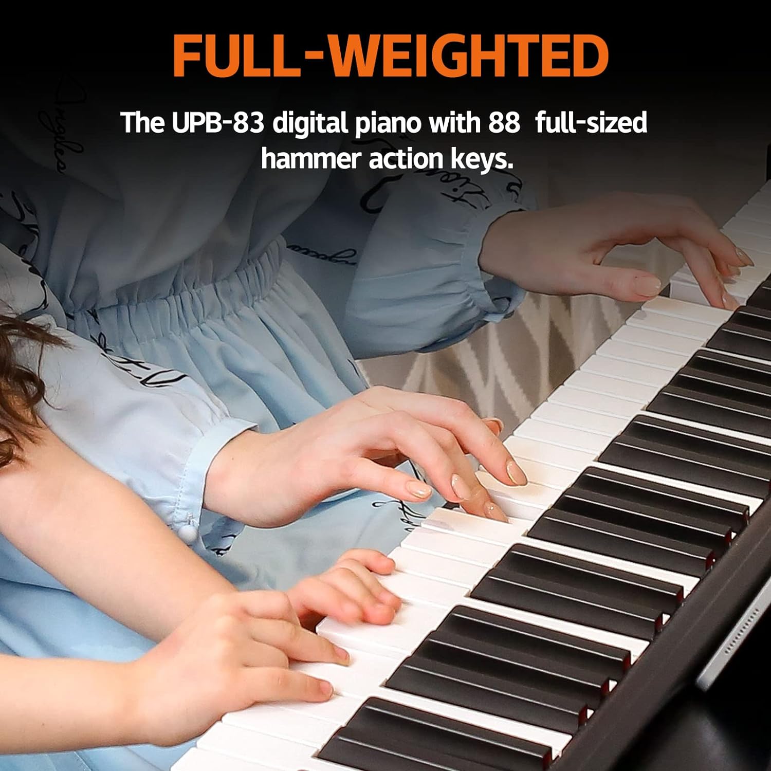 - 🎹【Fully Weighted Professional Piano Keys】Full-sized 88-key weighted keyboard, providing a smooth and high-response piano playing experience. Allows you to experience the feel of playing on a real piano. Size: 53.9"x29.13"x13.78"|Weight: 71.2 lbs; streamlined design, wooden case, three piano pedals (soft pedal, sustain pedal, and sostenuto pedal).