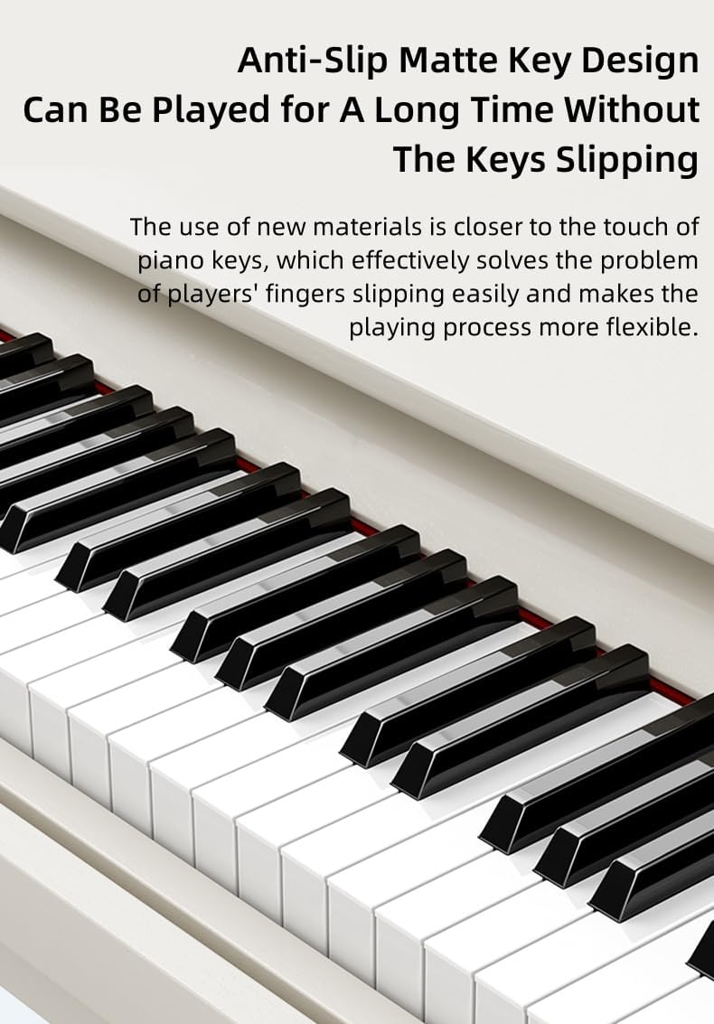 - 🎹【Anti-Slip Matte Key Design, Can Be Played for A Long Time Without the Keys Slipping】The use of new materials is closer to the touch of piano keys, which effectively solves the problem of players' fingers slipping easily and makes the playing process more flexible.
