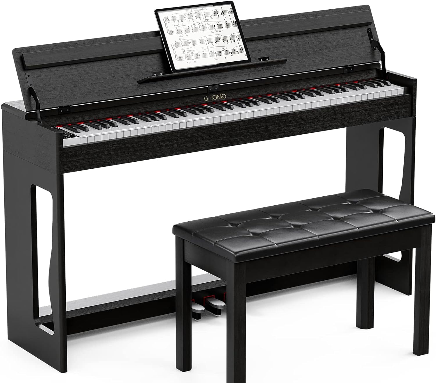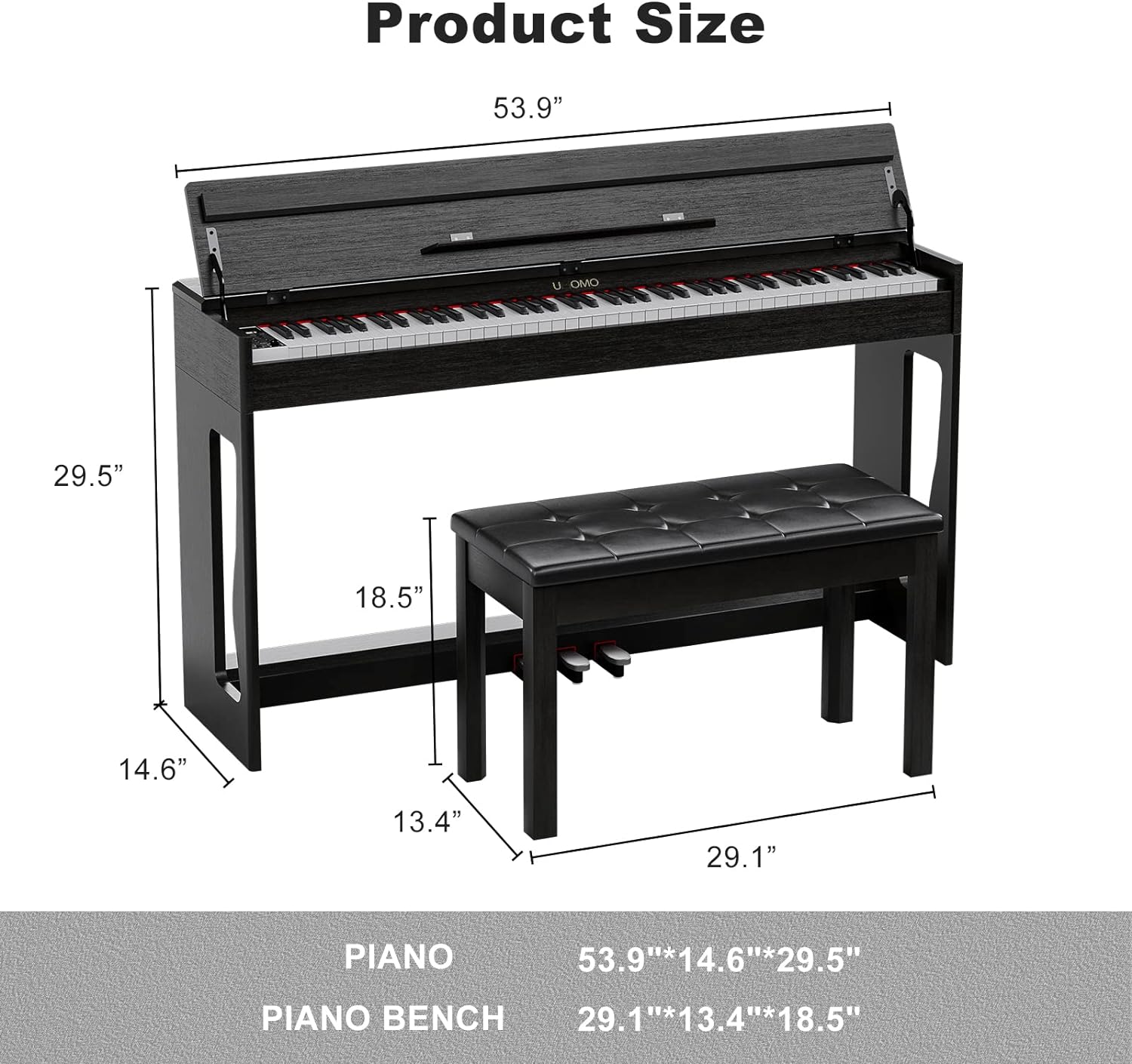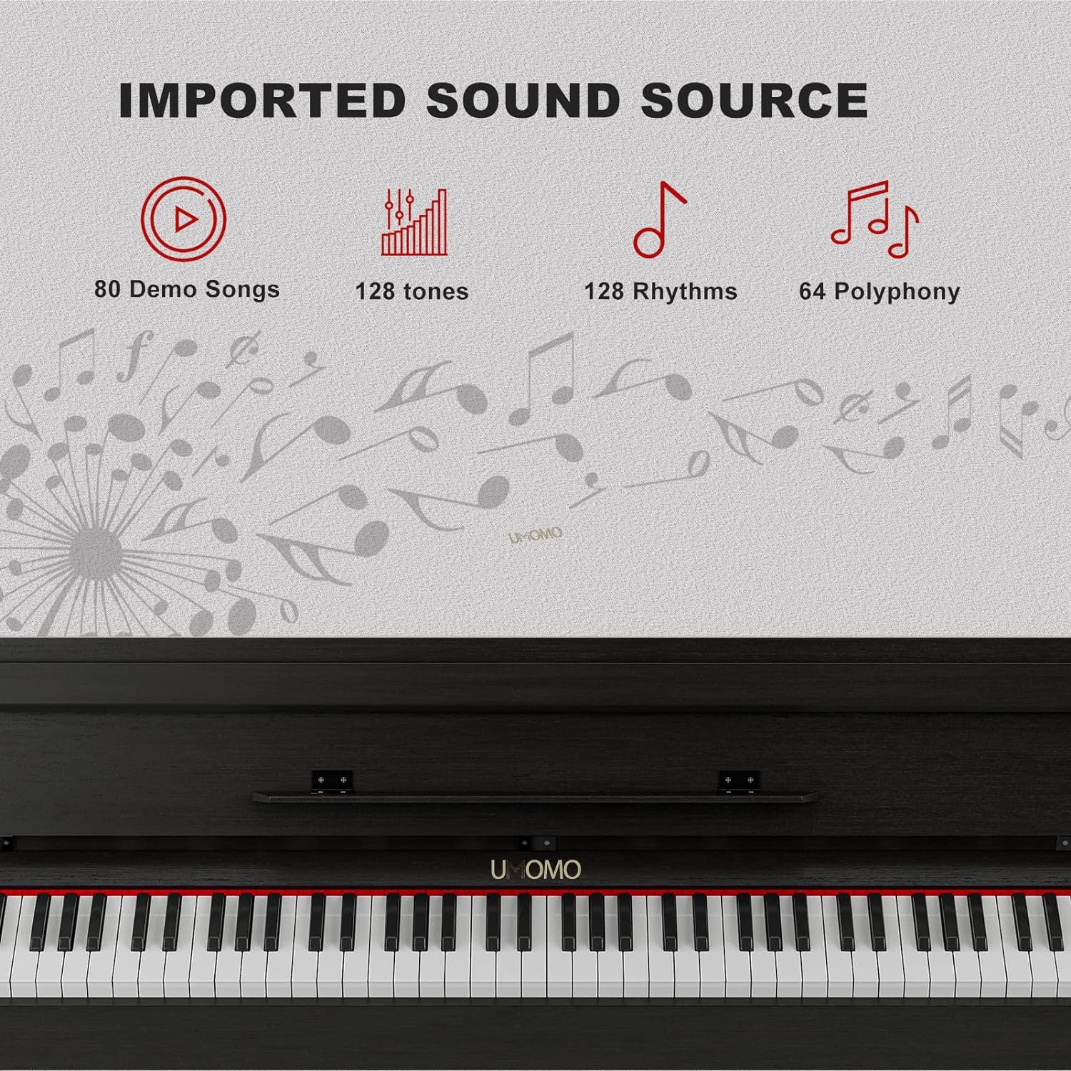 - 🎹 88 Weight Action Keys - UMOMO digital piano features 88 fully weighted hammer action keys, so it is heavier in the low end and lighter in the high end(A total of 10 grades), which can give you the feel of an acoustic piano and provide a wonderful playing experience!