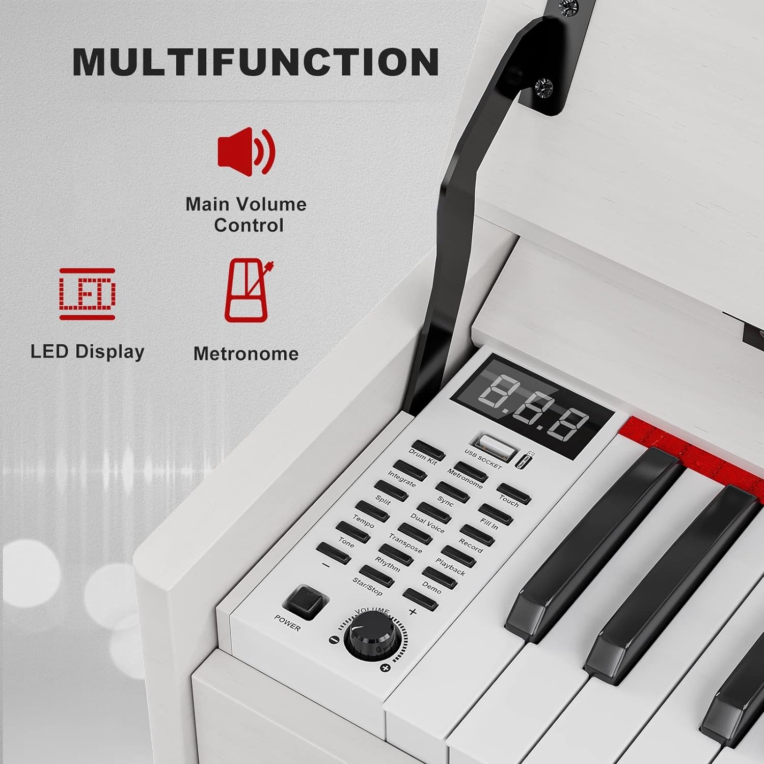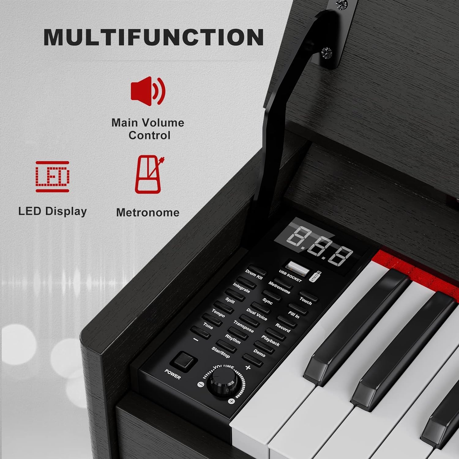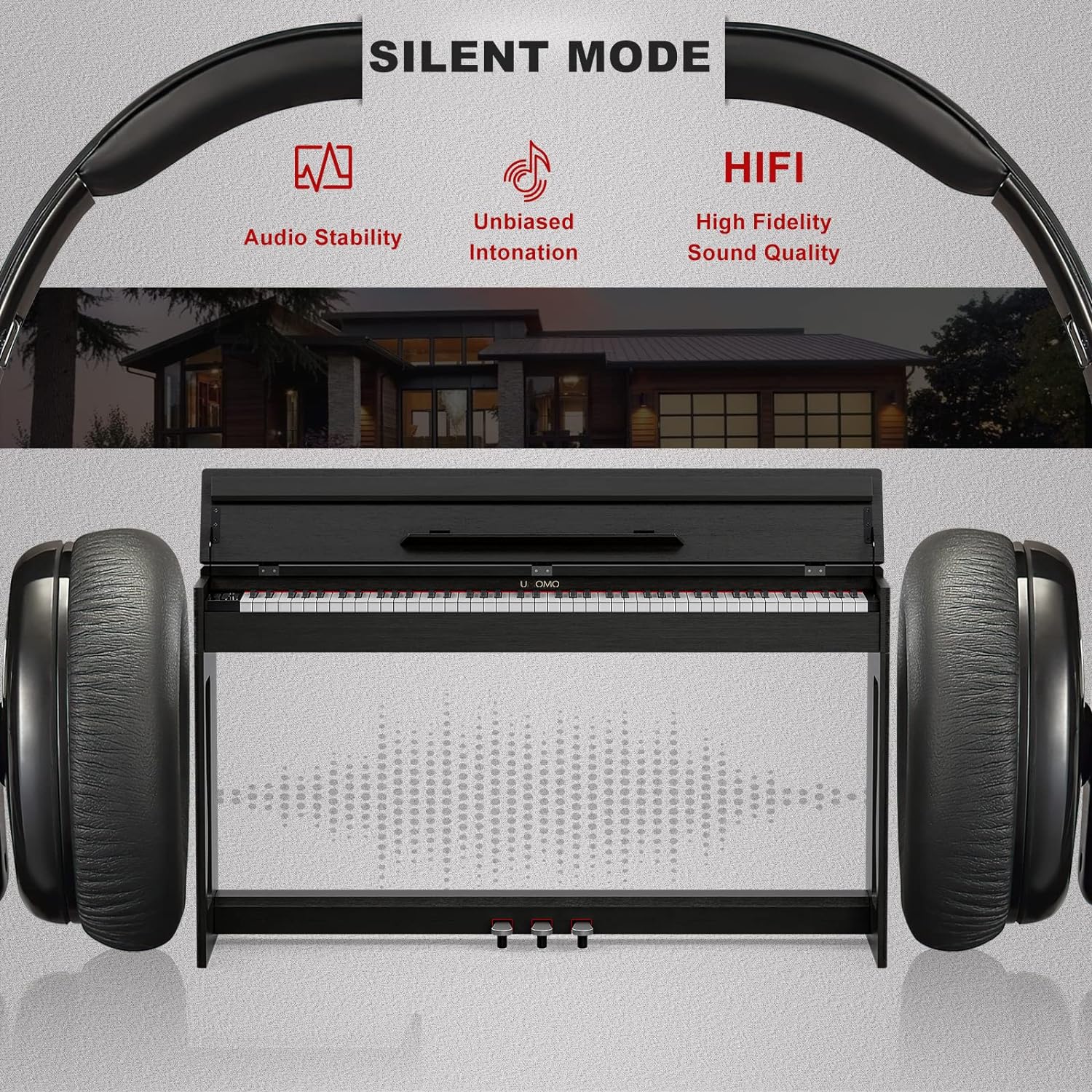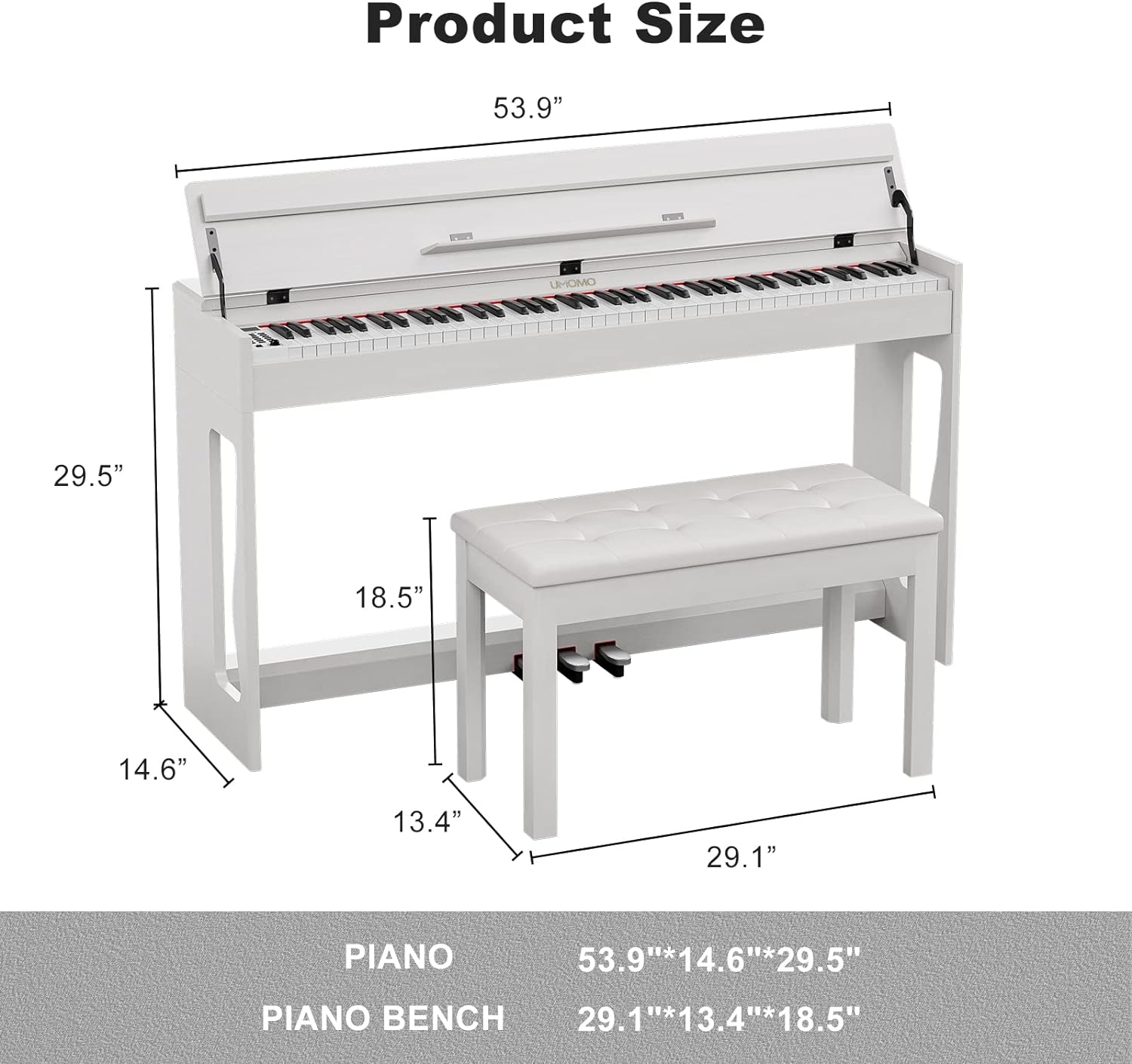 - 🎹 88 Weight Action Keys - UMOMO digital piano features 88 fully weighted hammer action keys, so it is heavier in the low end and lighter in the high end(A total of 10 grades), which can give you the feel of an acoustic piano and provide a wonderful playing experience!