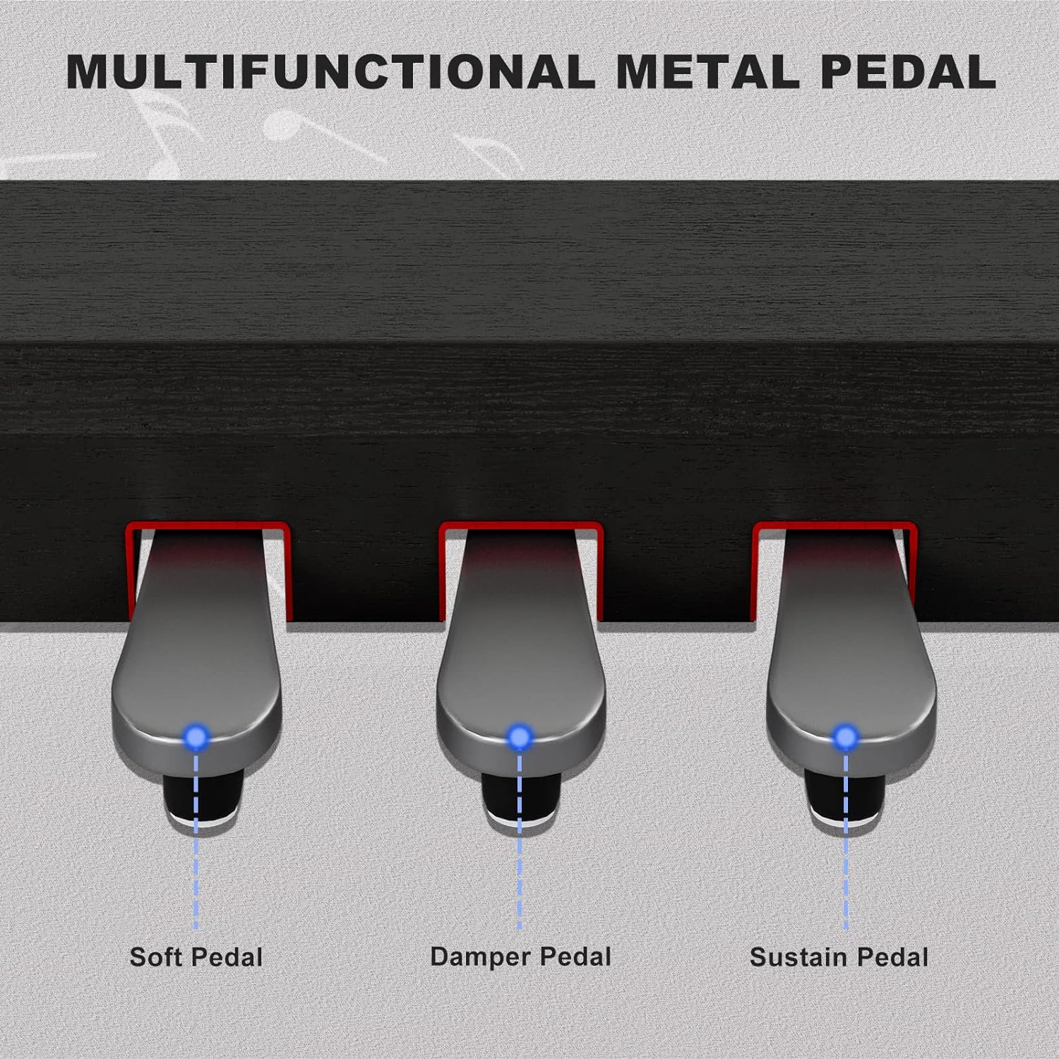- 🎹 FEATURE - 3 Pedal System (Soft/ Sustain/ Sostenuto Pedal)/ LCD Display Screen/ 80 Demo Songs/ Dual, 128 Tones/ 128 Rhythms/ Built-in Stereo Speakers/ Left/ Right Hands Mode/ Different Instrument Sounds.