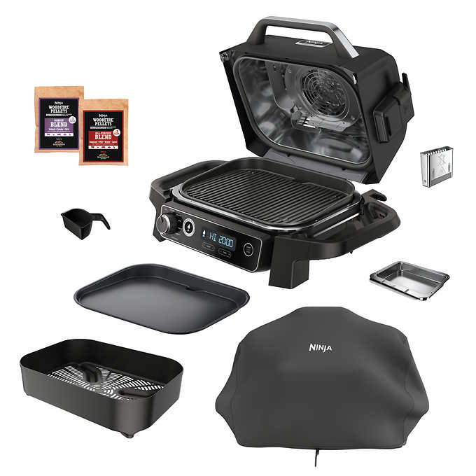 - WHAT'S INCLUDED: 141-sq-in. nonstick grill grate crisper basket pellet scoop Ninja Woodfire Pellets Robust Blend and All-Purpose Blend Starter Packs Grill Cover & Quick Start Guide with 15 recipes